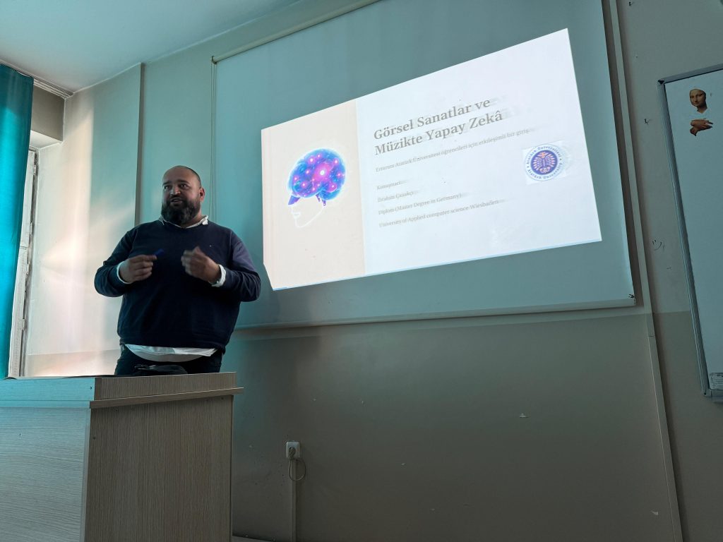 17 Haziran 2025 Görsel Sanatlar ve Müzik Eğitiminde Yapay Zeka Semineri Dpl. İnf. İbrahim Çanakçı tarafından 27.05.2025 tarihinde Güzel Sanatlar Eğitimi Bölümü’nde yapay zeka semineri verildi.