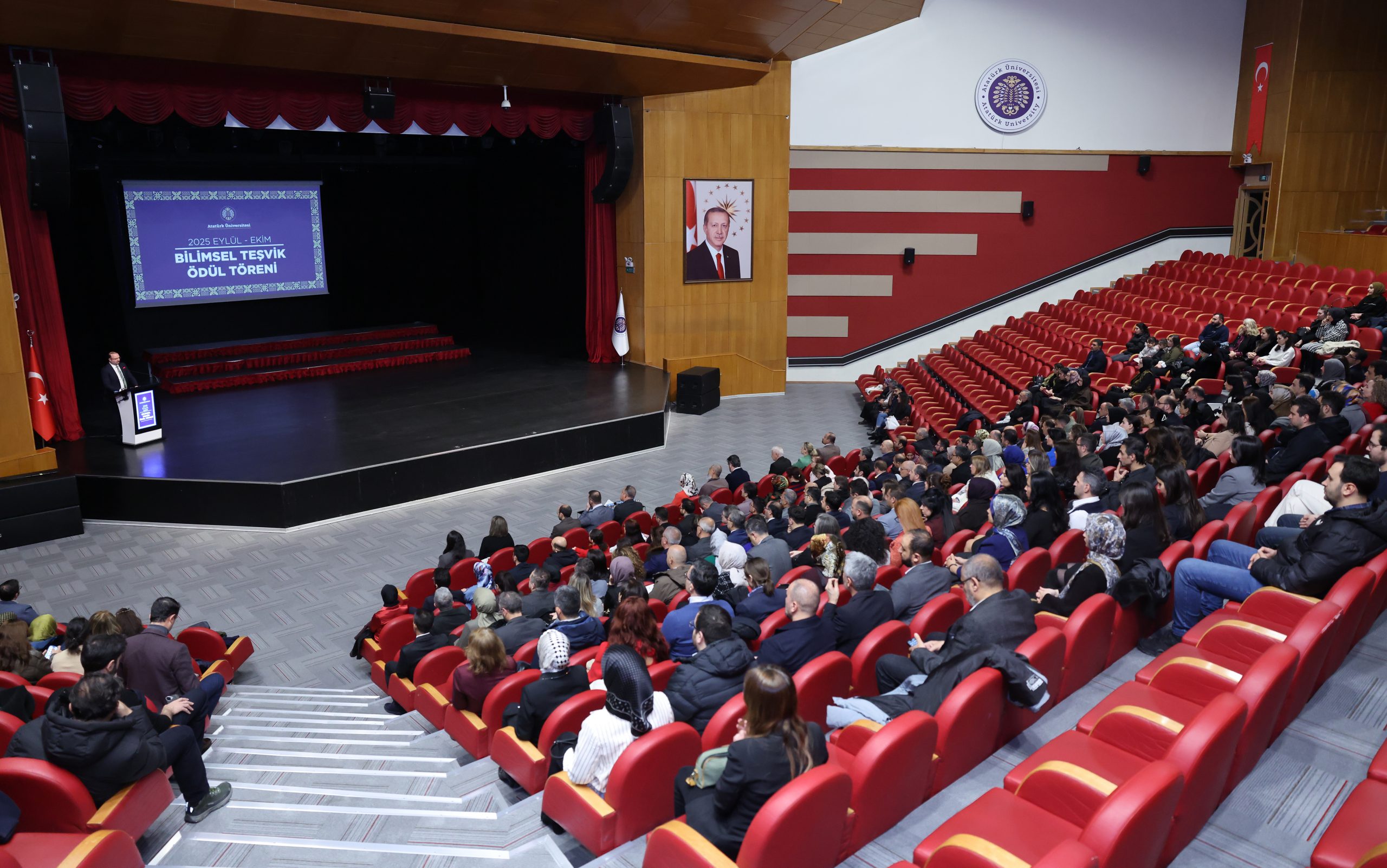 2025 yılı boyunca yürüttükleri araştırma faaliyetleriyle bilimsel ve akademik üretime katkı sunan öğretim üyeleri, Eylül ve Ekim aylarında gerçekleştirilen başvuruların ardından 15 Temmuz Millî İrade Salonu’nda düzenlenen törende ödüllerini Atatürk Üniversitesi Rektörü Prof. Dr. Ahmet Hacımüftüoğlu’nun elinden aldı.