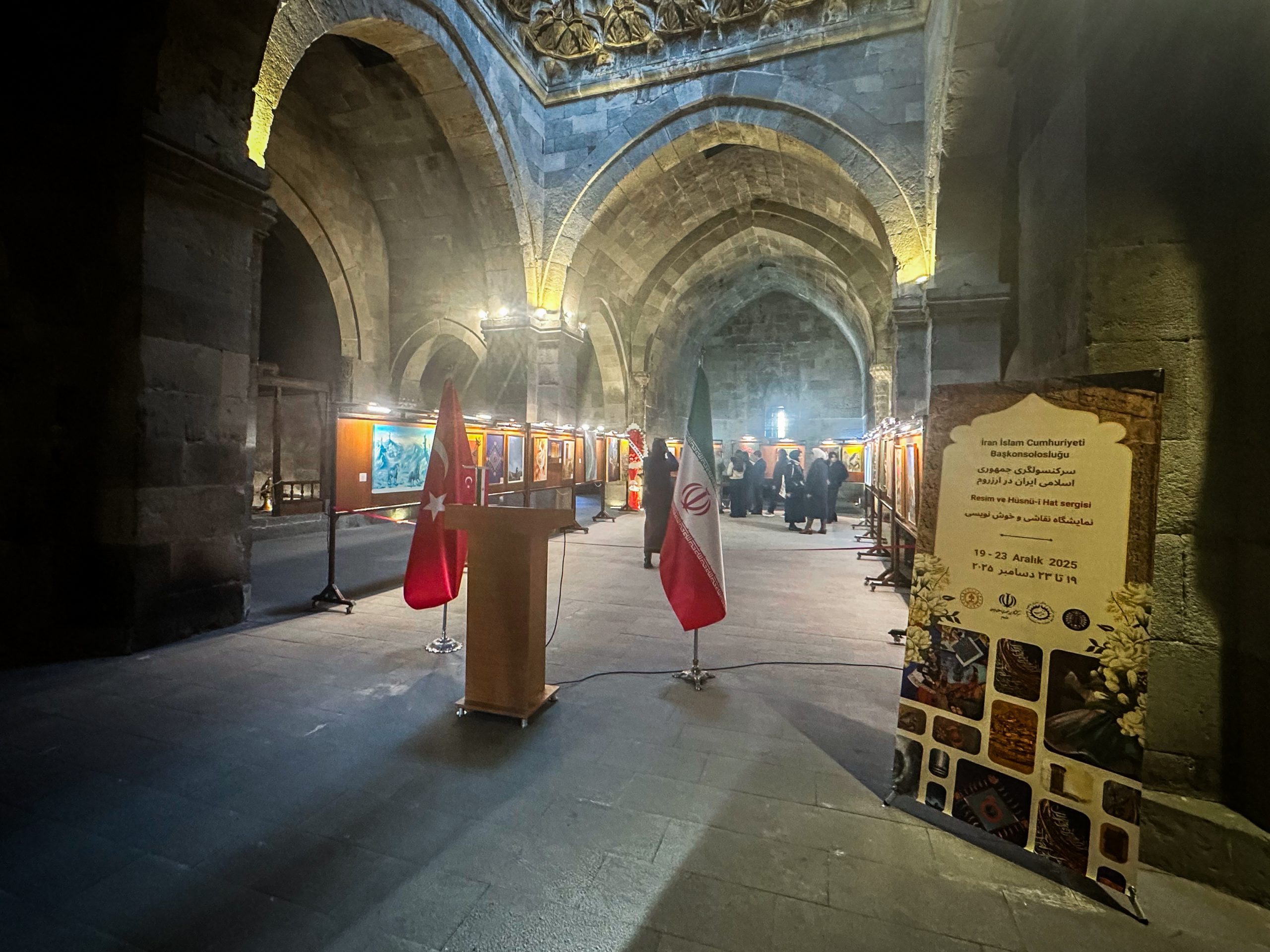 Erzurum İran İslam Cumhuriyeti Başkonsolosluğu öncülüğünde ve fakültemizin paydaşları arasında yer aldığı, 19–23 Aralık 2025 tarihleri arasında Yakutiye Medresesi Türk İslam Eserleri ve Etnografya Müzesi’nde düzenlenen **“Resim ve Hüsn-i Hat Sergisi”**nin açılışı gerçekleştirildi.
