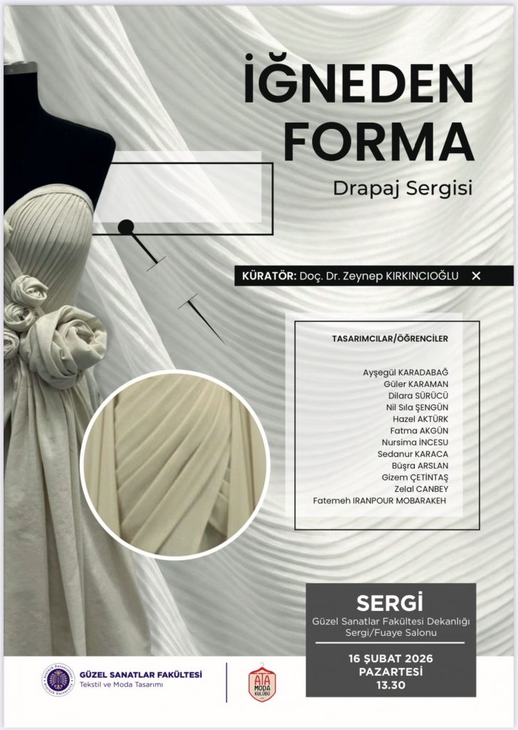 Güzel Sanatlar Fakültesi bünyesinde düzenlenecek olan “İğneden Forma: Drapaj” sergisi, Zeynep Kırkıncıoğlu’nun küratörlüğünde sanatseverlerle buluşmaya hazırlanıyor.