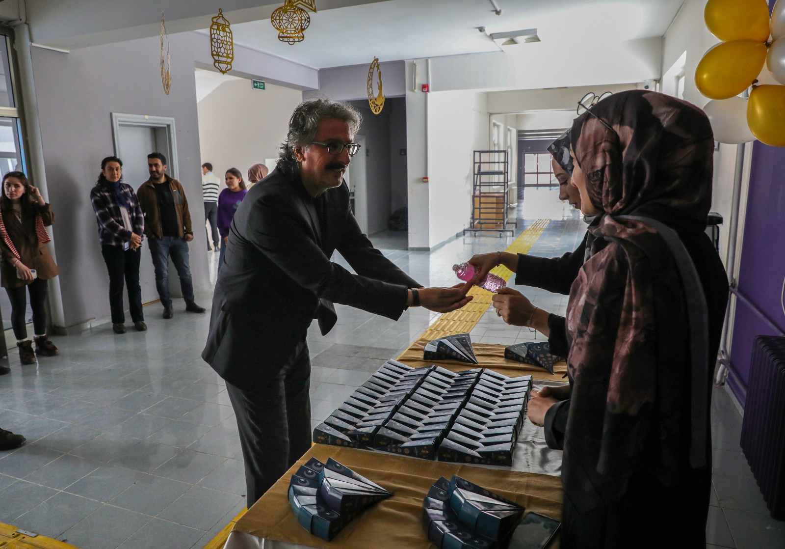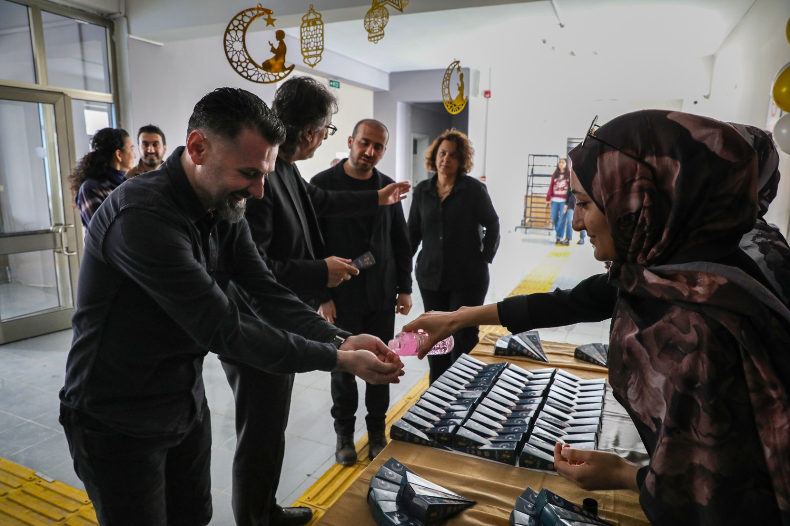Proje kapsamında öğrencilerimiz, fakülte öğrenci girişinde lokum ve kolonya ikramında bulunarak Ramazan’ın birlik ve beraberlik ruhunu fakülte ortamında yaşatmıştır. Fakülte yönetimimiz ve öğrencilerimiz de ikramlardan faydalanarak bu anlamlı paylaşıma ortak olmuştur.