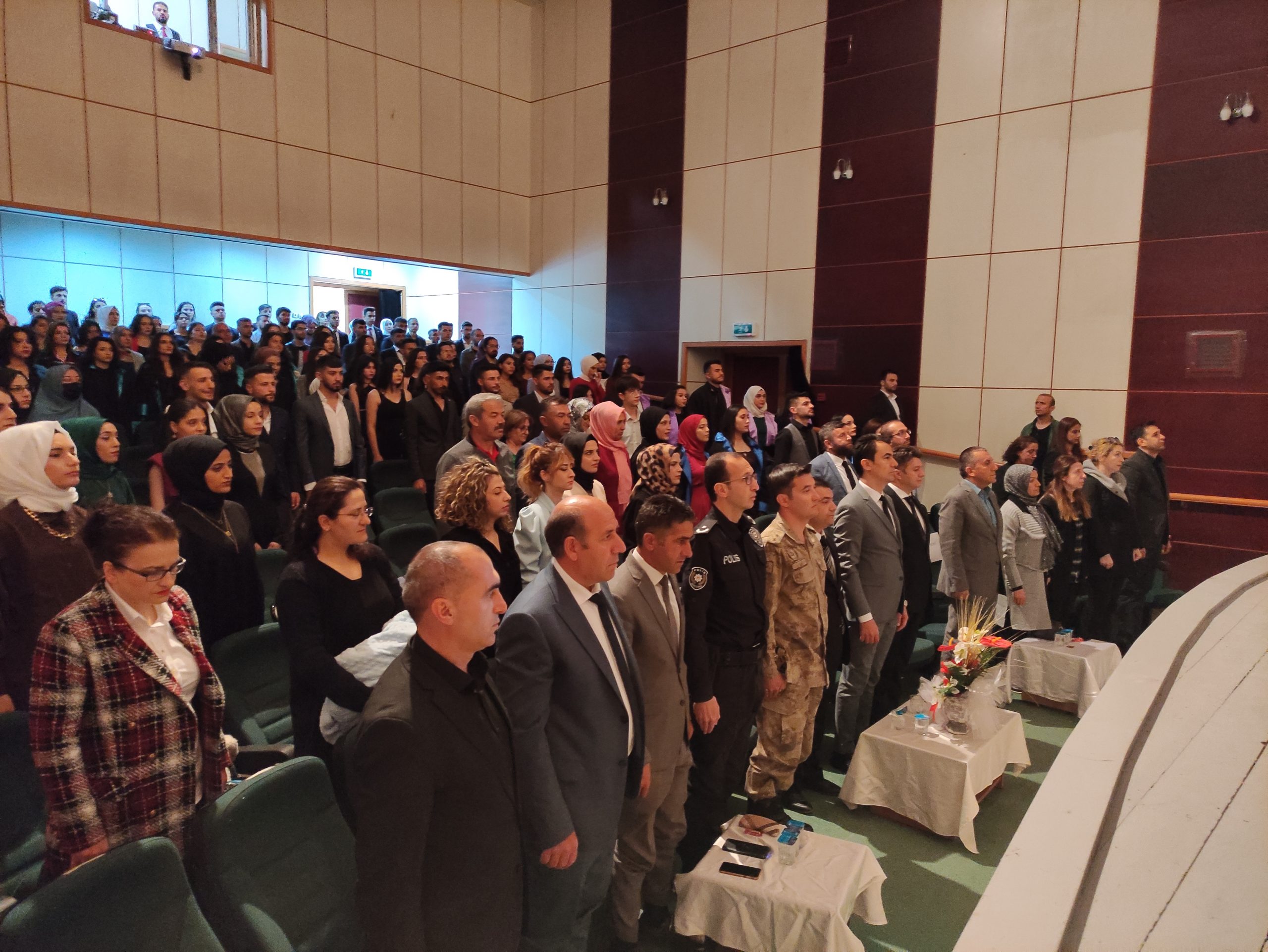 Meslek Yüksekokulu 2021 – 2022 Akademik Yılı mezuniyet töreni Hınıs İlçe Kaymakamı Hamza İnam, Hınıs ilçe Belediye Başkanına vekaleten Abdullah İlçi,  İlçe Emniyet Müdürü Oral Partal, İlçe Jandarma Komutanı Tevfik Özek, İlçe Milli Eğitim Müdürü Mehmet Çiftçi, diğer kurum amirleri, eski MYO Müdürü Doç. Dr. Serkan Yıldırım, MYO Öğretim Elemanları ve İdari Personeli, öğrenci velileri ve MYO öğrencilerinin katılımıyla ESMEK binasında gerçekleştirilmiştir. Resmi tören ardından MYO bahçesinde kep atma töreni yapılmıştır.