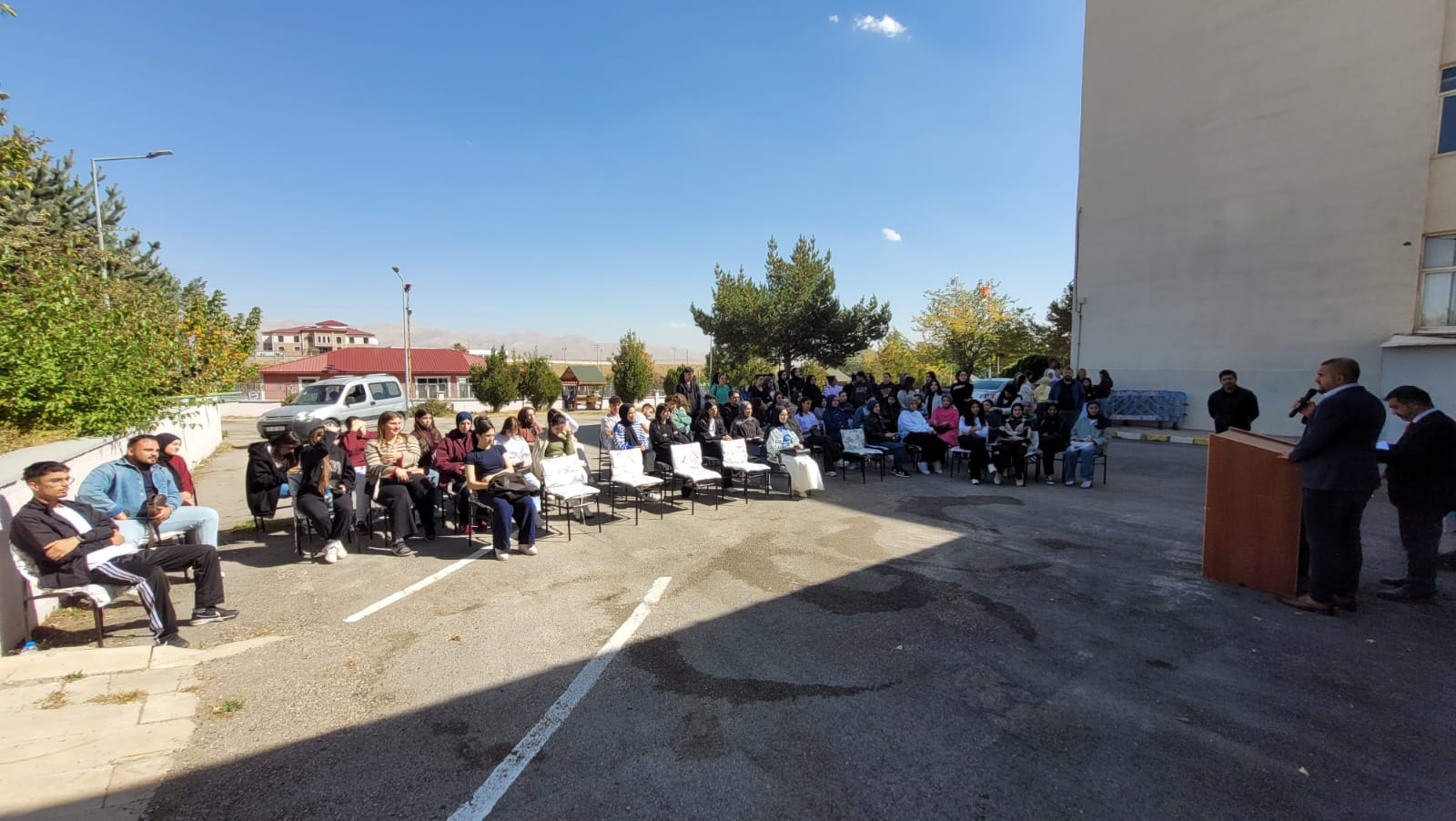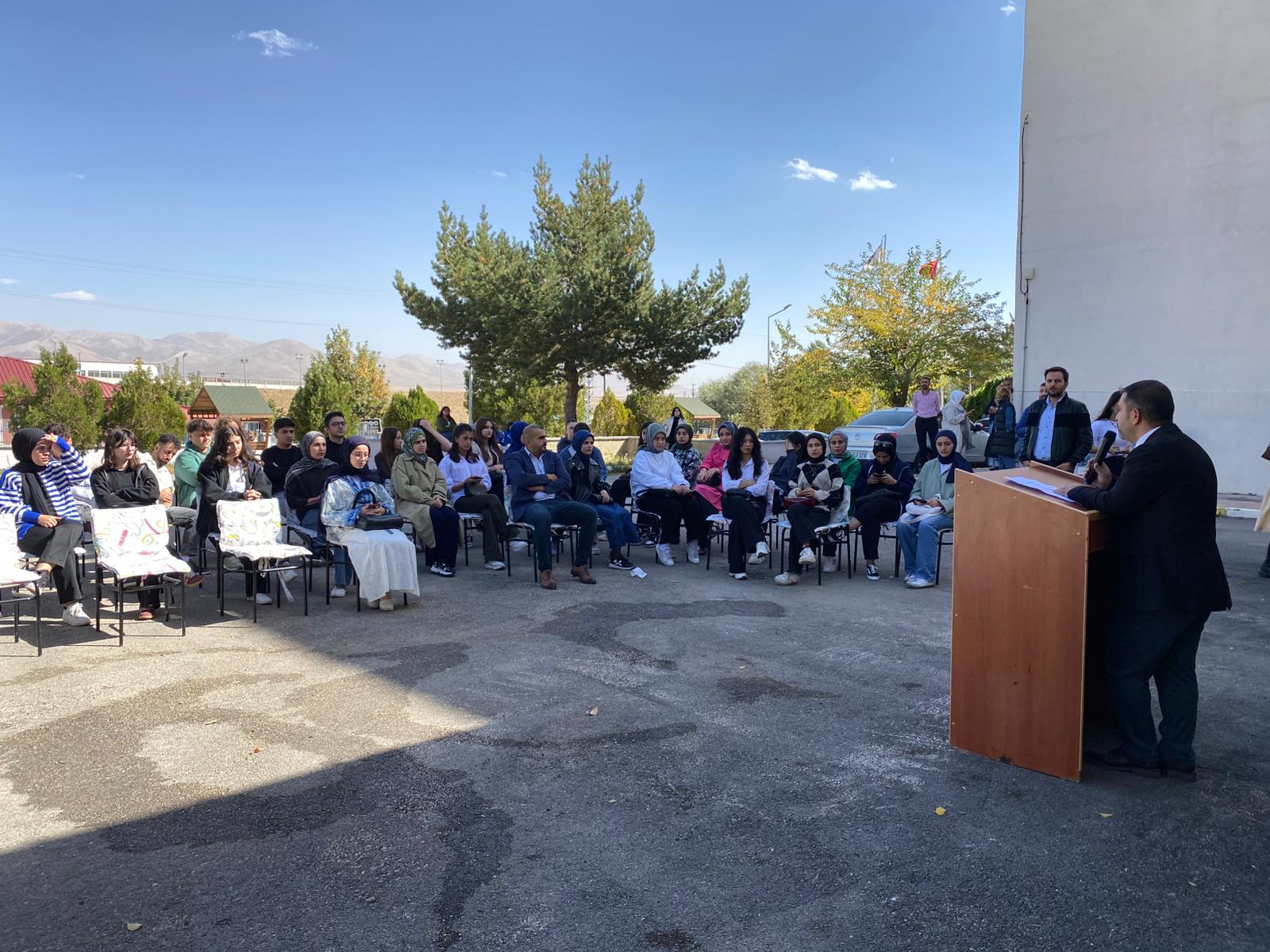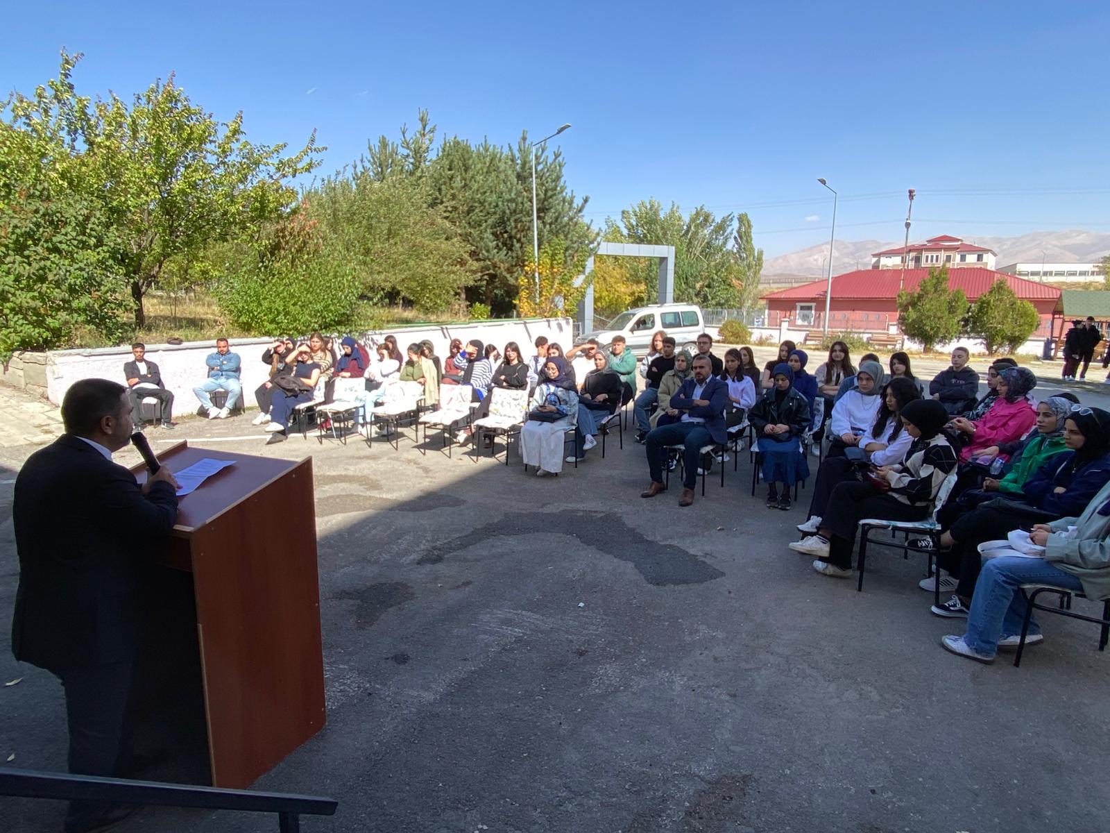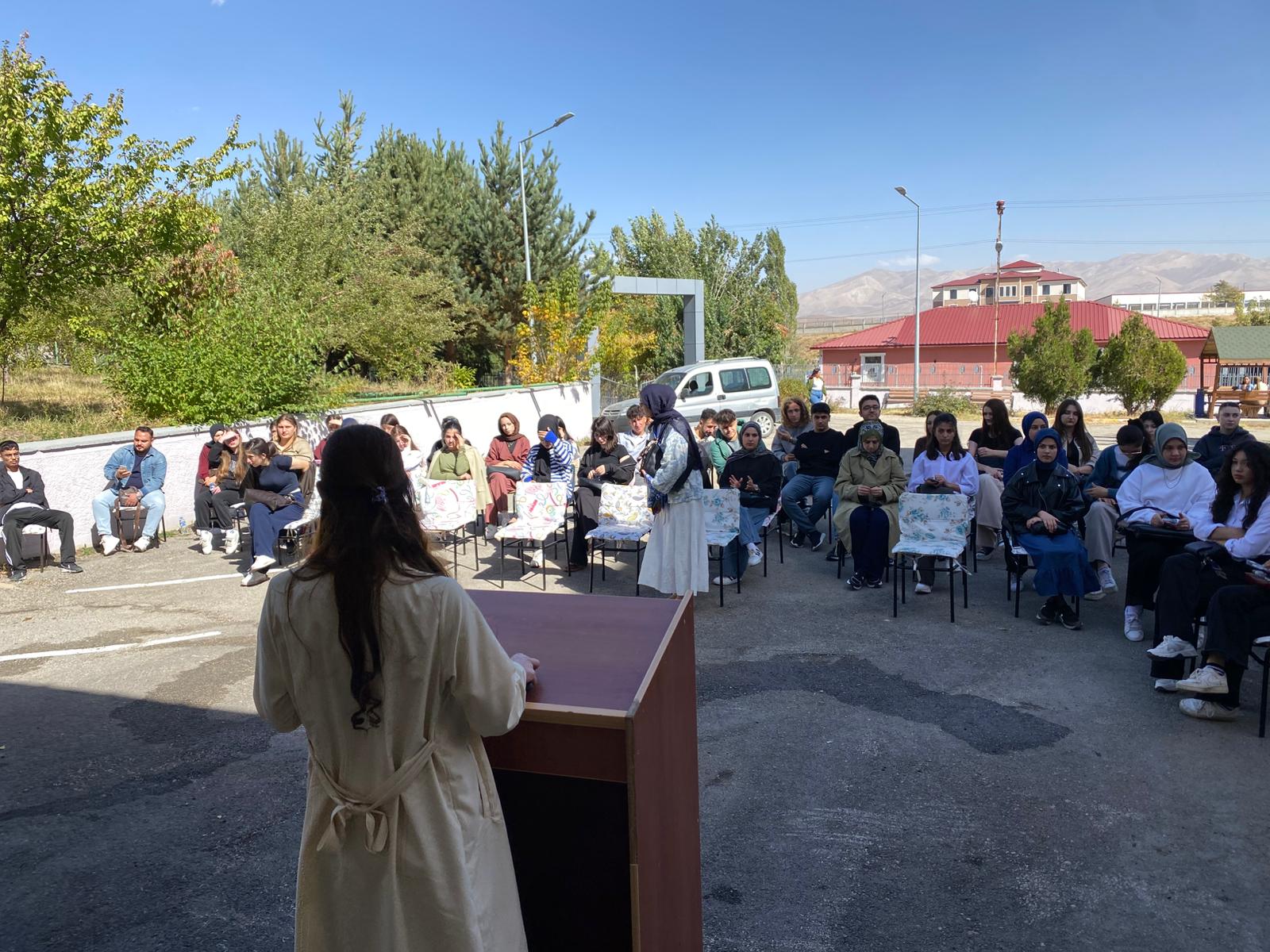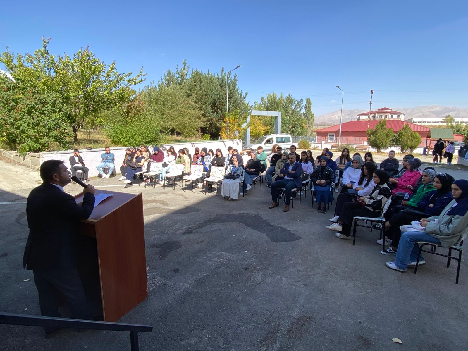 Meslek Yüksekokulu Yönetimi ve Öğretim Elemanları oryantasyon eğitimi kapsamında yeni kayıt yaptıran öğrencilerle yüksekokul kampüsü bahçesinde bir araya geldi. Söyleşide, öğrencilerin eğitim-öğretim dönemiyle ilgili dile getirdiği sorular yönetim tarafından cevaplandı.