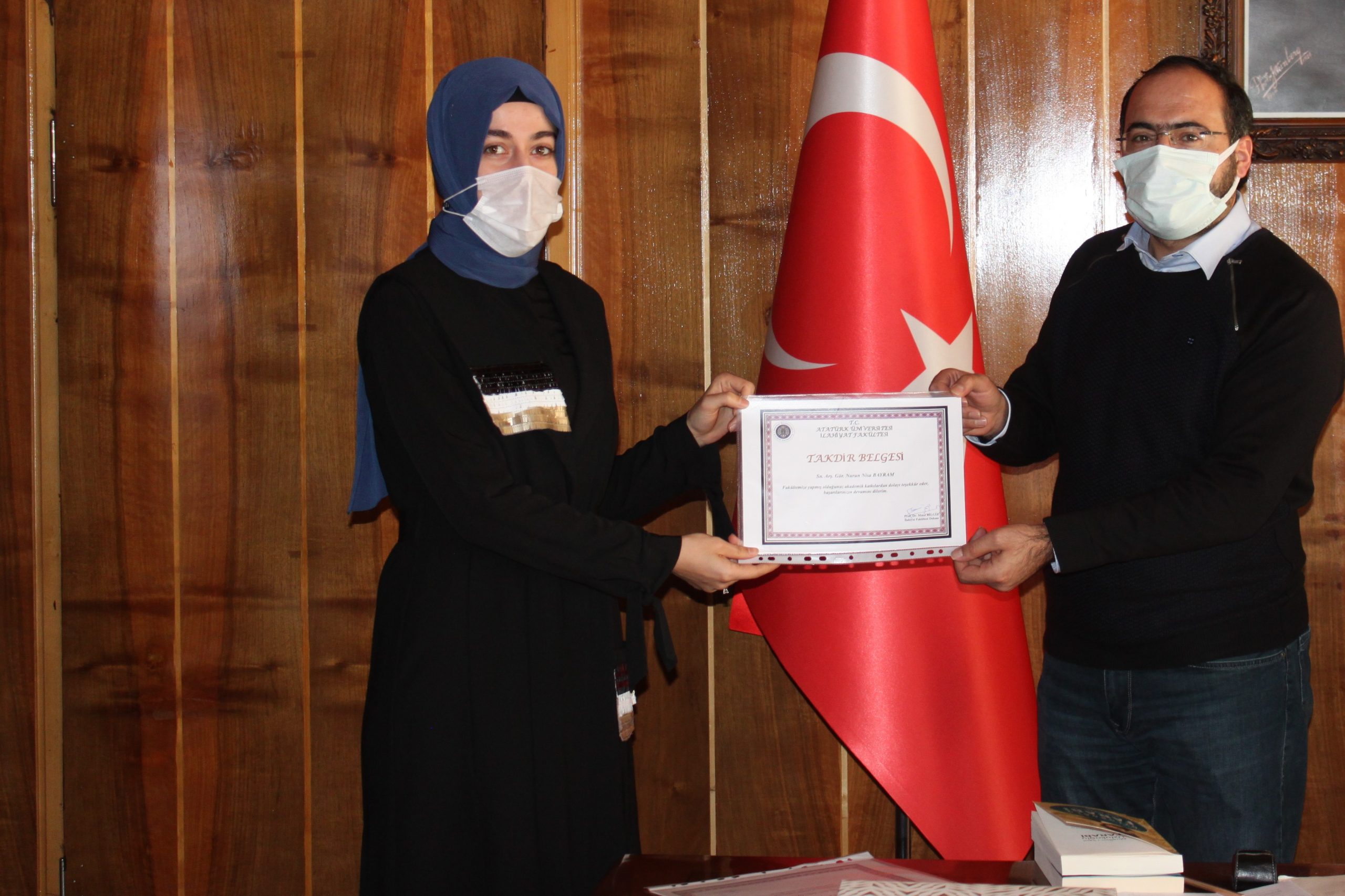 Fakültemiz öğretim elemanı Arş. Gör. Nurun Nisa BAYRAM’ a Fakültemiz İlahiyat Tetkikleri Dergisine yapmış olduğu akademik katkılarından dolayı, Dekanlığımızca takdir belgesi verildi..