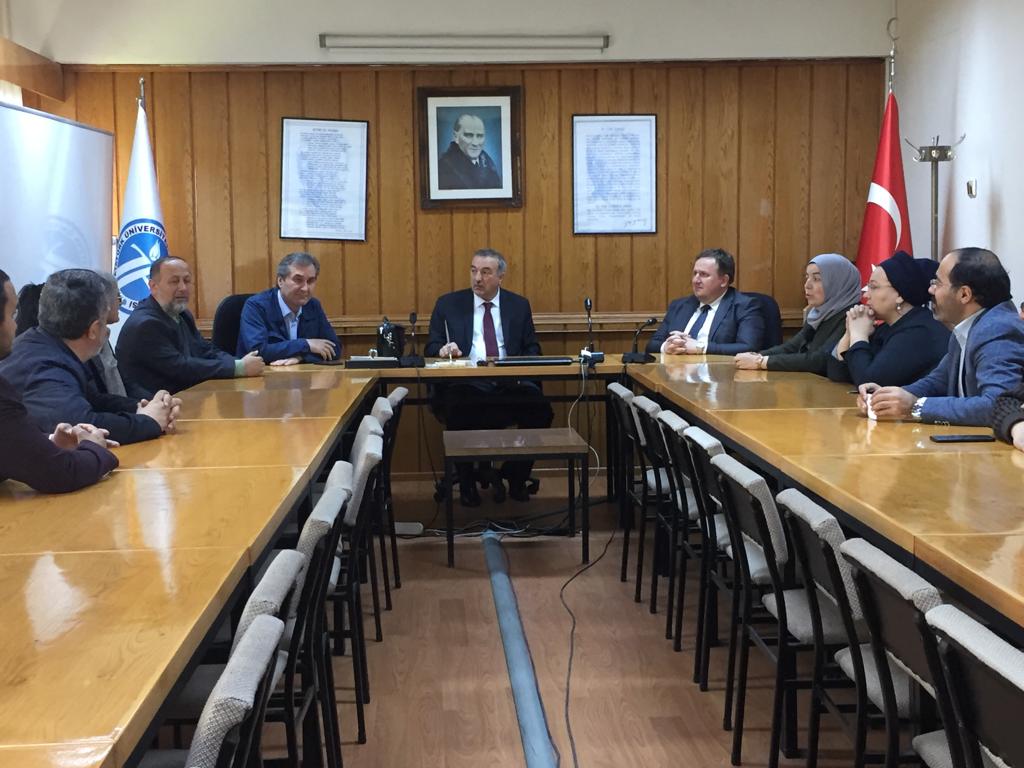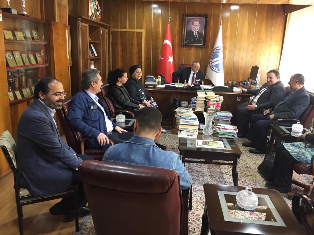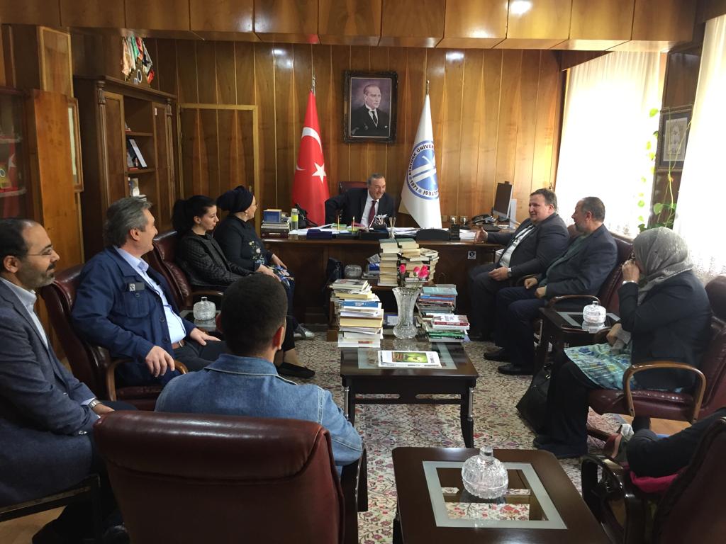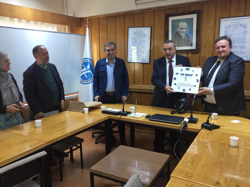 Fakültemiz Dekanı Prof. Dr. Musa BİLGİZ ile Dekan Yardımcılarımız Prof. Dr. Osman ELMALI ve Doç. Dr. Muhammed KIZILGEÇİT, Bosna Hersek İslami Pedagoji Fakültesi Dekanı Doç. Dr. Hajrud HODZIC ile eğitimde uygulanan programlar hakkında karşılıklı fikir alışverişinde bulundular. Fakültemiz Dekan ve Dekan Yardımcıları kendilerine ziyaretlerinden ötürü teşekkürlerini ilettiler.