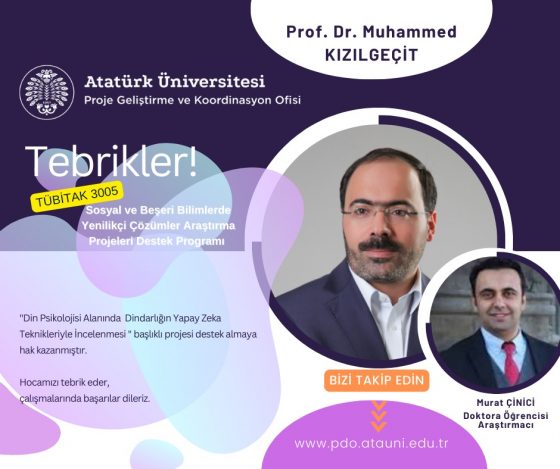 Fakültemiz öğretim üyesi Prof.Dr.Muhammed KIZILGEÇİT’in öncülüğünde yürütülen TÜBİTAK 3005 – Sosyal ve Beşeri Bilimlerde Yenilikçi Çözümler Araştırma Projeleri kapsamında ‘Din Psikolojisi Alanında Dindarlığın Yapay Zekâ Teknikleri ile İncelenmesi’ başlıklı proje destek almaya hak kazanmıştır.