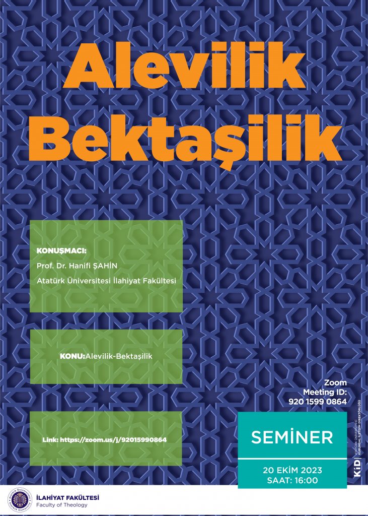 Dekanlığımızın öğrencilerimiz için düzenlediği Cuma Seminerleri bugün saat 16.00’da başlıyor. Bu kapsamda Fakültemiz hocalarından Prof. Dr. Hanifi ŞAHİN’in Alevilik-Bektaşilik Semineri bugün16.00’da yapılacaktır. Katılım için: https://zoom.us/j/92015990864