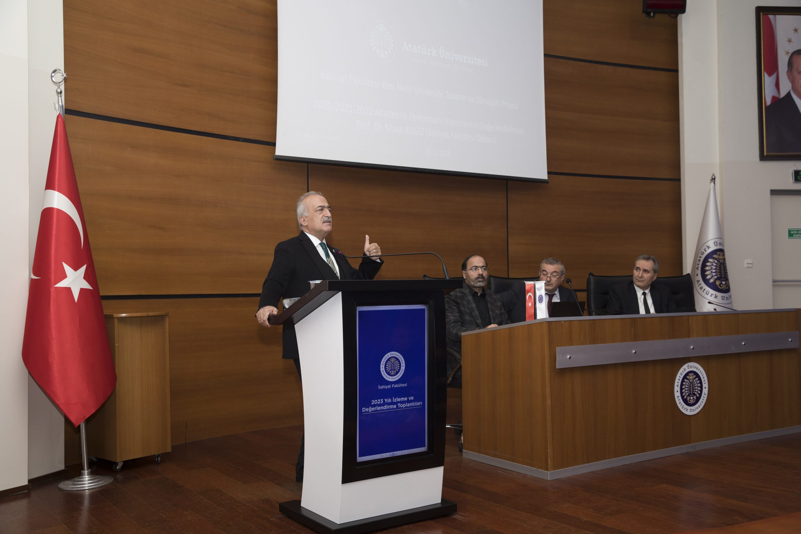 Yeni Nesil Üniversite Tasarım Ve Dönüşüm Projesinde Kültürel Dönüşüm Çalışmaları Kapsamında yapılan İzleme ve Değerlendirme Toplantılarında Fakültemiz Yönetimi Değerlendirme Sunumlarını Gerçekleştirdiler.