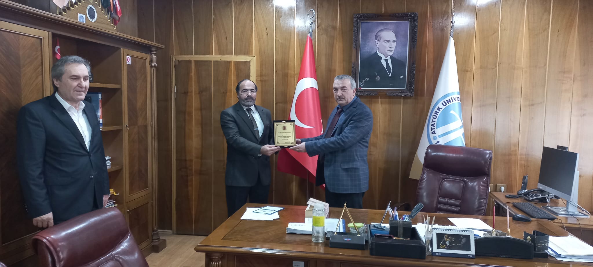 Devir teslim törenine katılan Rektör Yardımcılarımız Prof. Dr. Turgut GÖĞEBAKAN ve Prof. Dr. Hüseyin ÖZER katkılarından dolayı Prof. Dr. Musa BİLGİZ’e plaket tekdimi ardından teşekkür ederken, dekan olarak atanan Prof. Dr. Muhammed KIZILGEÇİT’e de başarılar dilediler.
