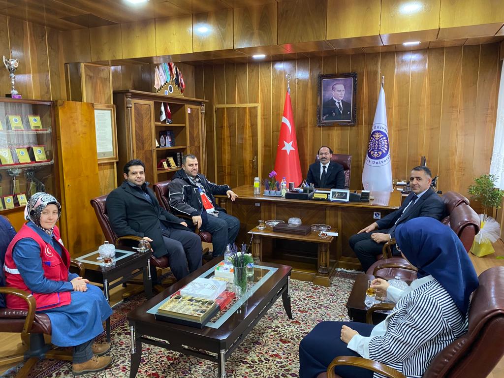 Erzurum GHSİM Palandöken Gençlik Merkezi müdürü Mehmet Gözütok ve beraberindeki heyet Fakültemize dekan olarak atanan Prof. Dr. Muhammed KIZILGEÇİT’e başarı dileklerini ilettiler. Dekan KIZILGEÇİT ziyaretlerinden ötürü Mehmet GÖZÜTOK ve beraberindeki heyete teşekkürlerini iletti.