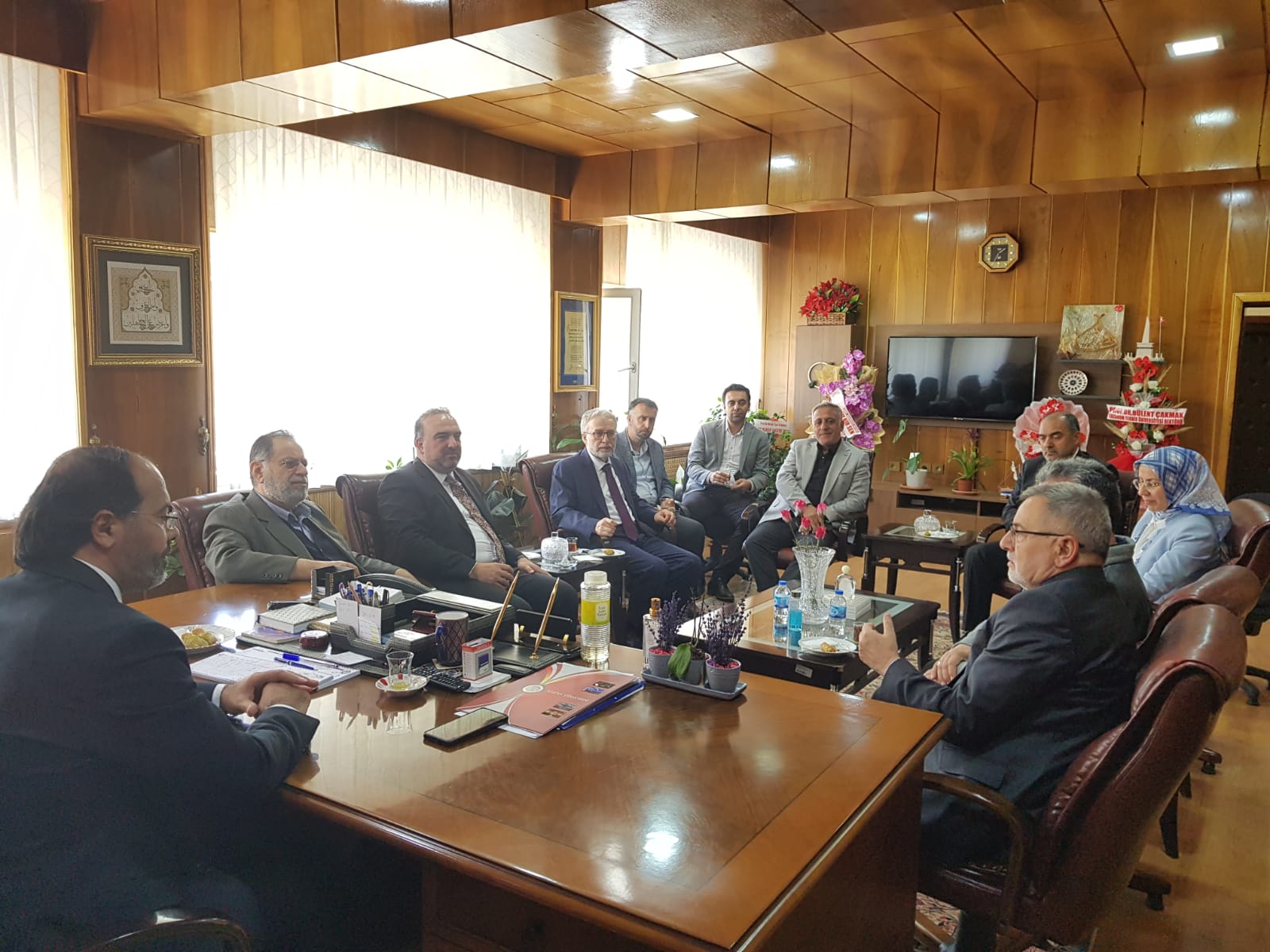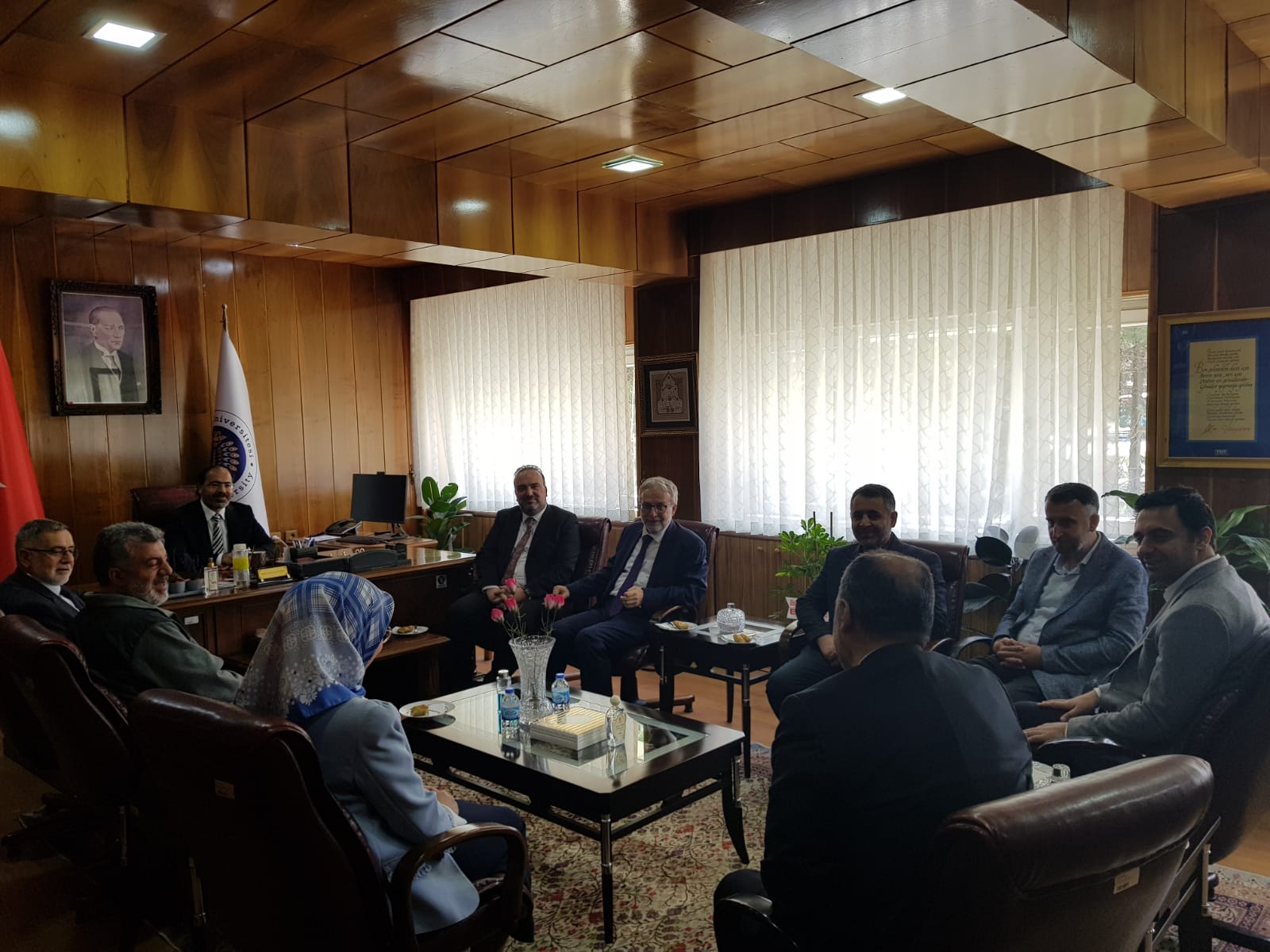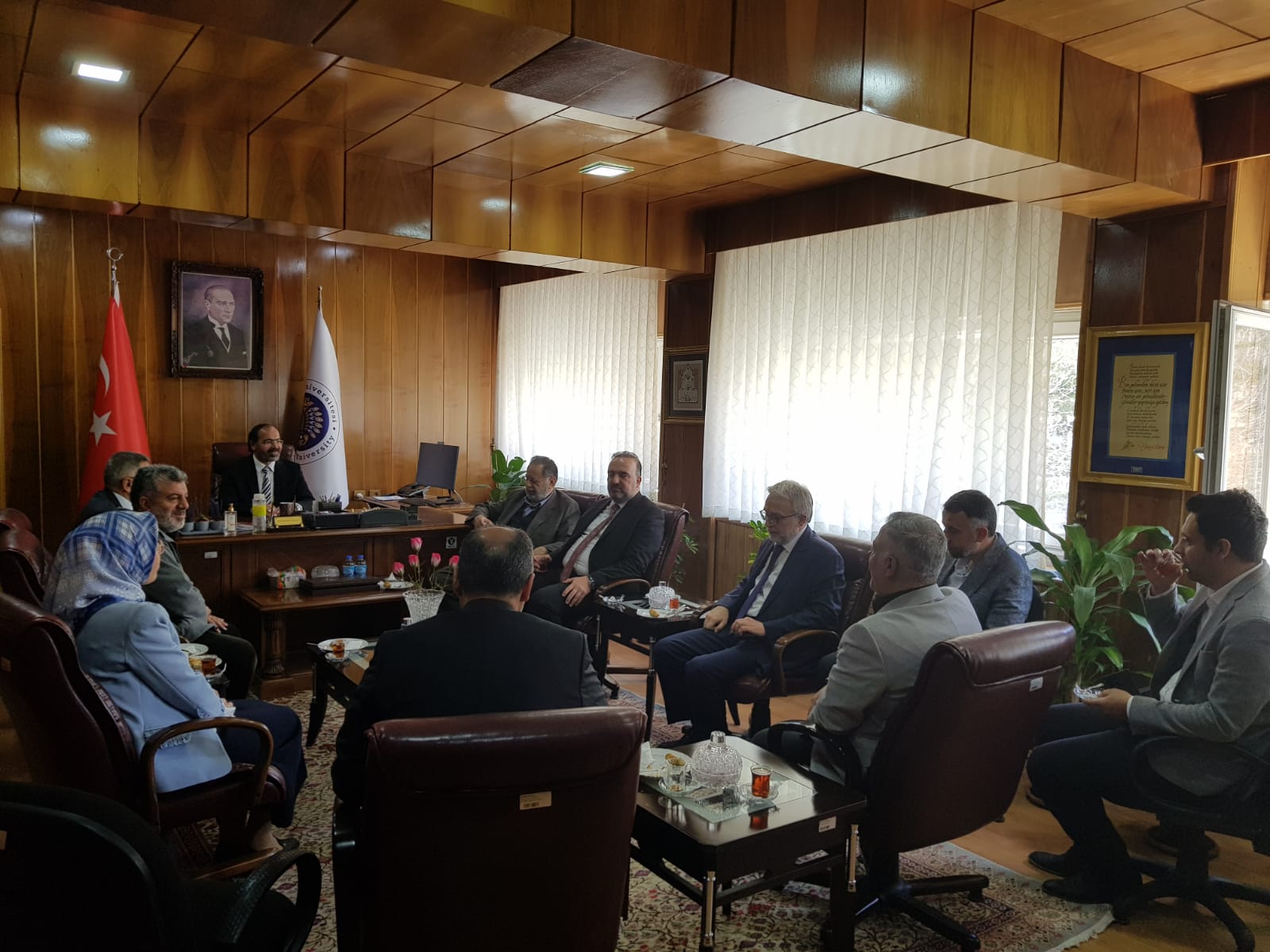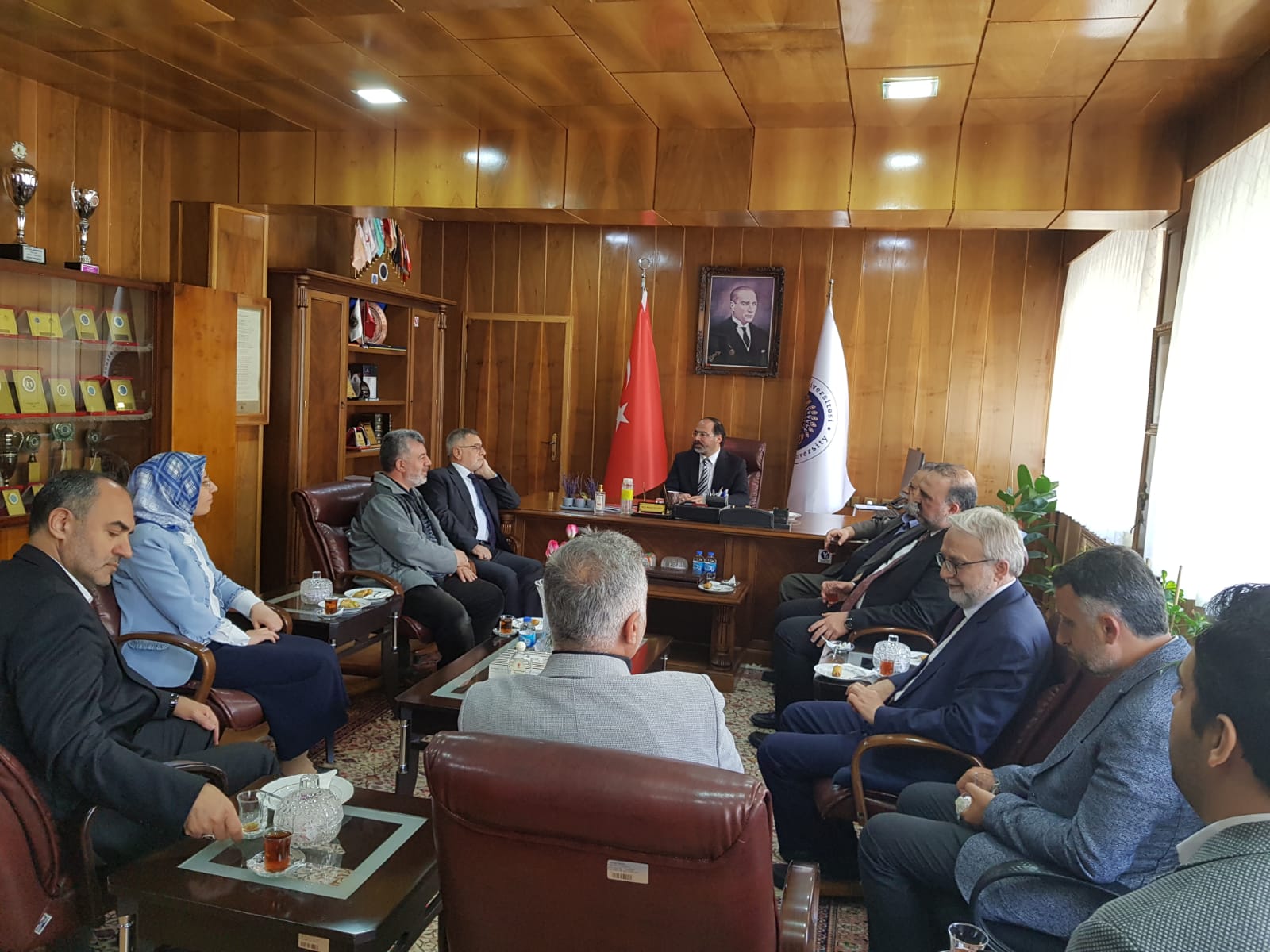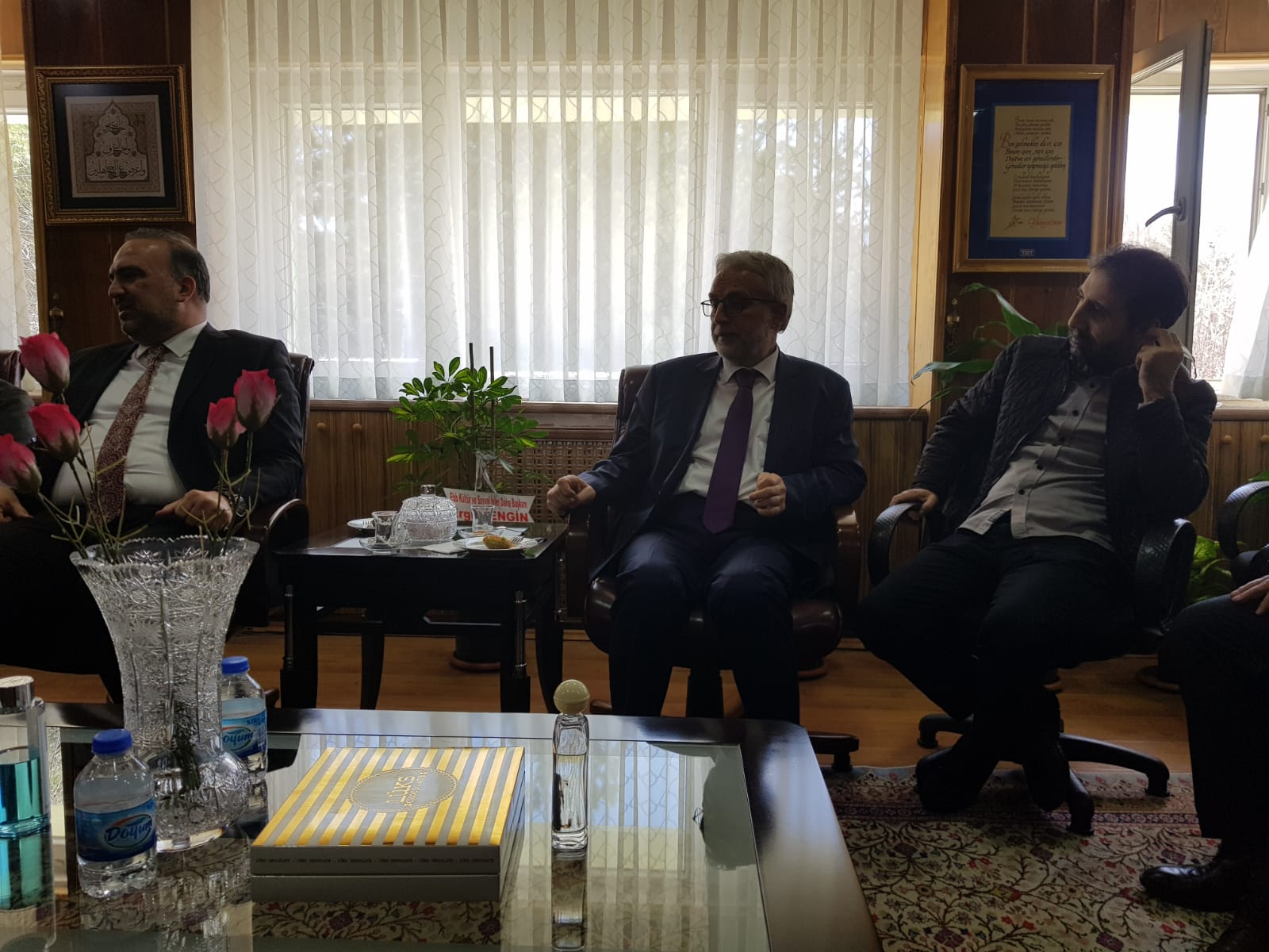 17 Nisan 2024 Dekan KIZILGEÇİT’e Ziyaret Türkiye Diyanet Vakfı Genel Müdürü İzani TURAN, Türkiye Diyanet Vakfı Mütevelli Heyeti Üyesi Doç. Dr. Fatih Kurt ve Erzurum İl Müftüsü Dr. Rüstem Can Dekanımız Prof. Dr. Muhammed KIZILGEÇİT’e “hayırlı olsun” ziyaretinde bulundu.