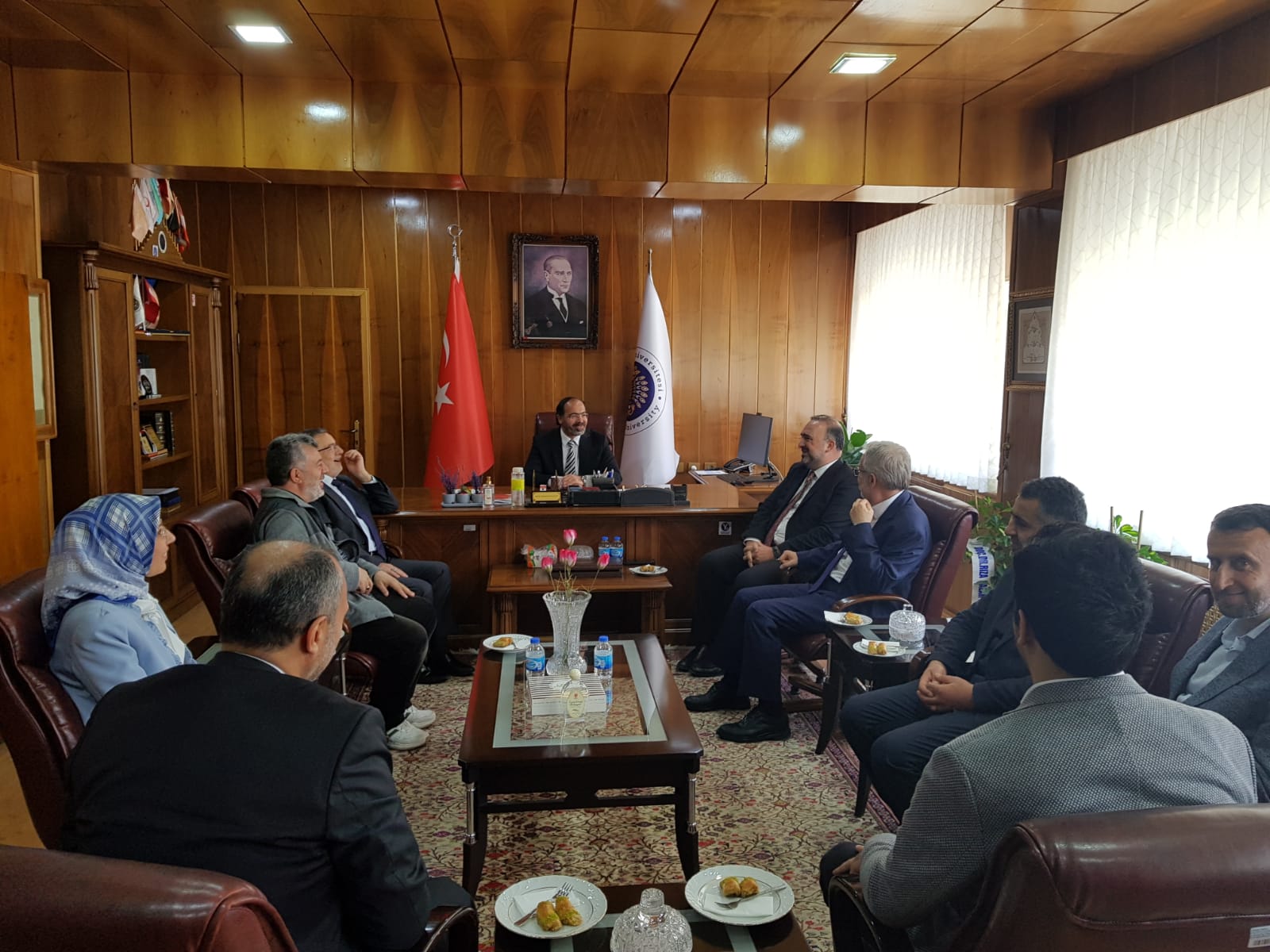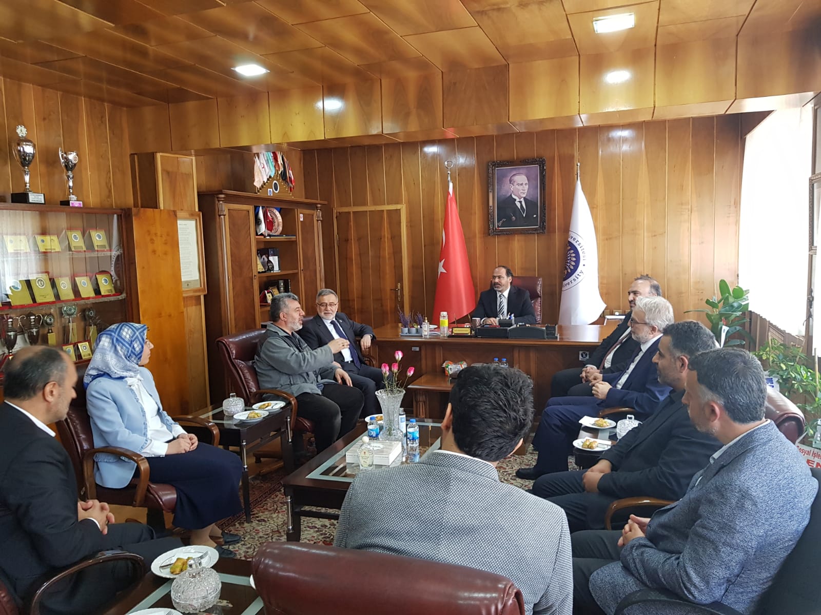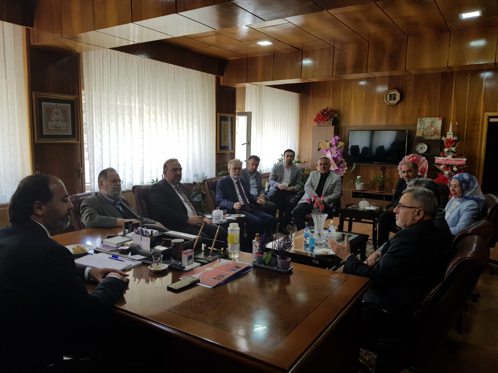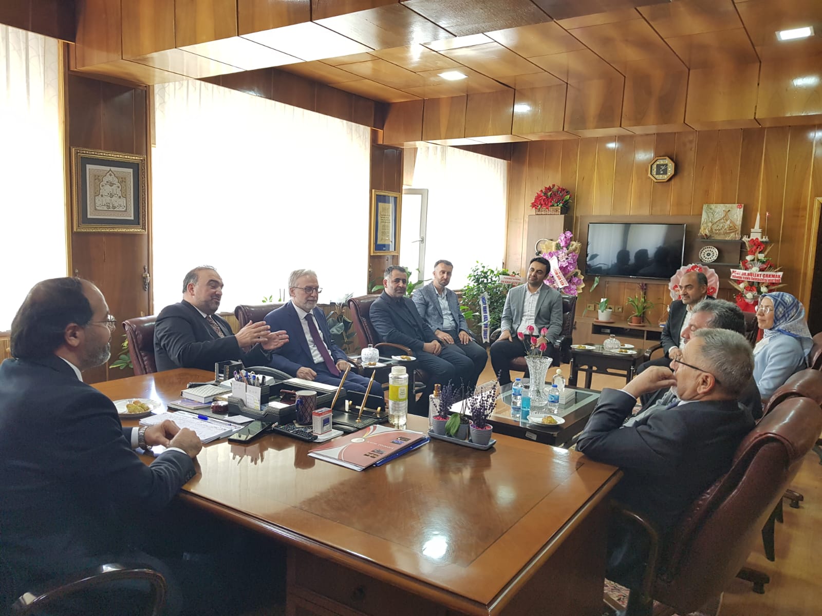 17 Nisan 2024 Dekan KIZILGEÇİT’e Ziyaret Türkiye Diyanet Vakfı Genel Müdürü İzani TURAN, Türkiye Diyanet Vakfı Mütevelli Heyeti Üyesi Doç. Dr. Fatih Kurt ve Erzurum İl Müftüsü Dr. Rüstem Can Dekanımız Prof. Dr. Muhammed KIZILGEÇİT’e “hayırlı olsun” ziyaretinde bulundu.