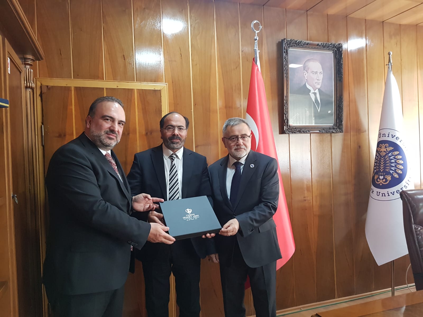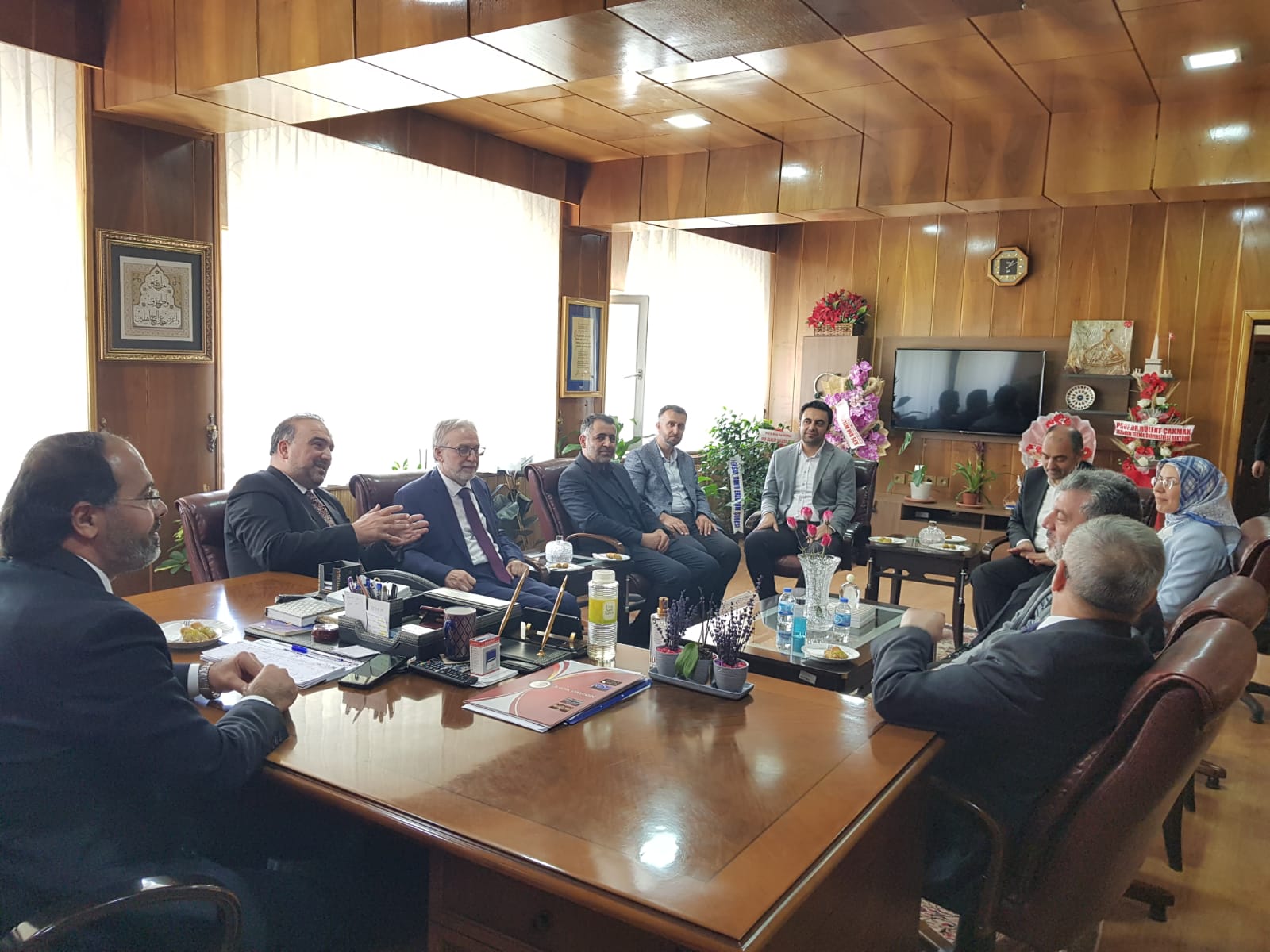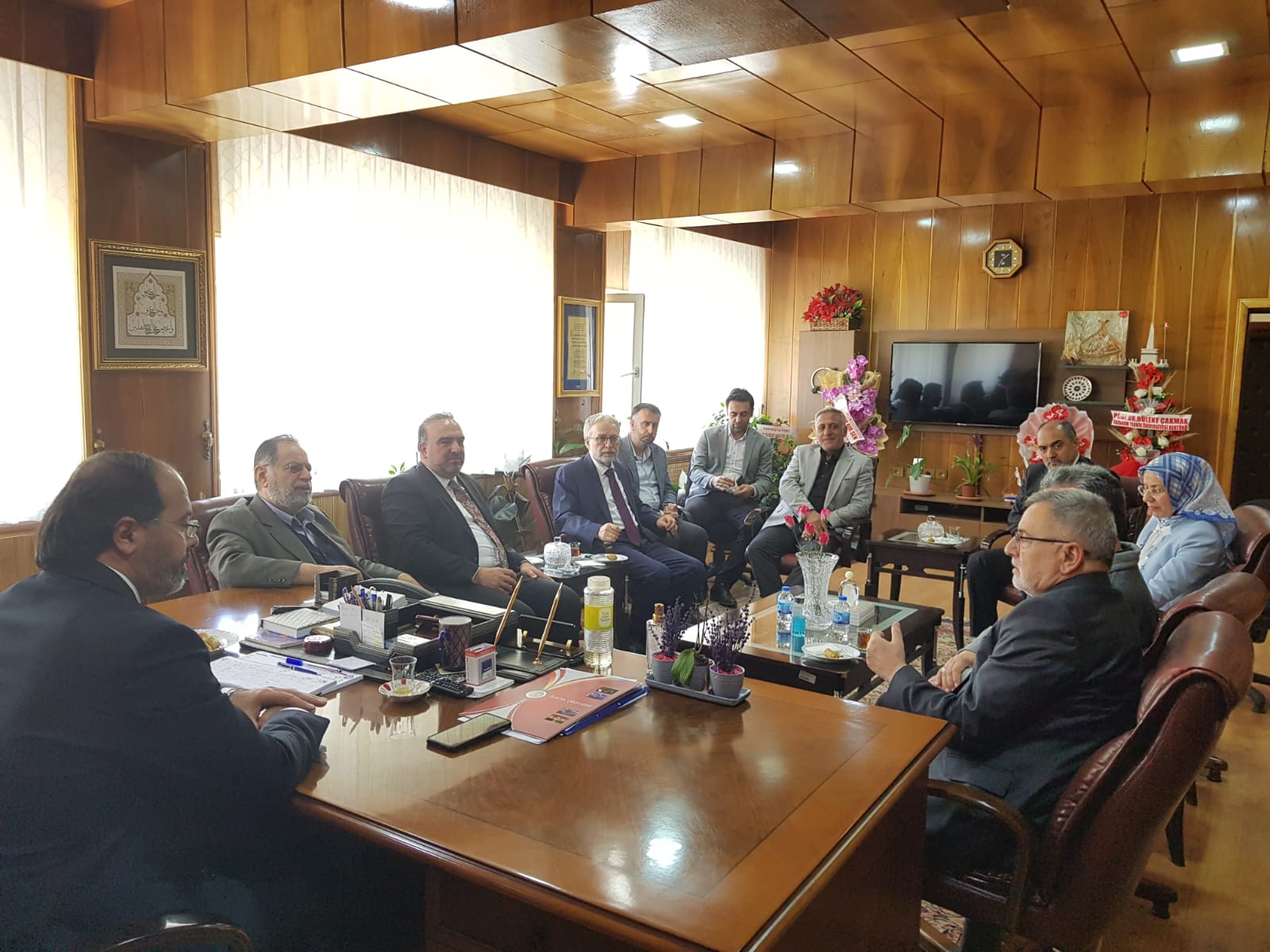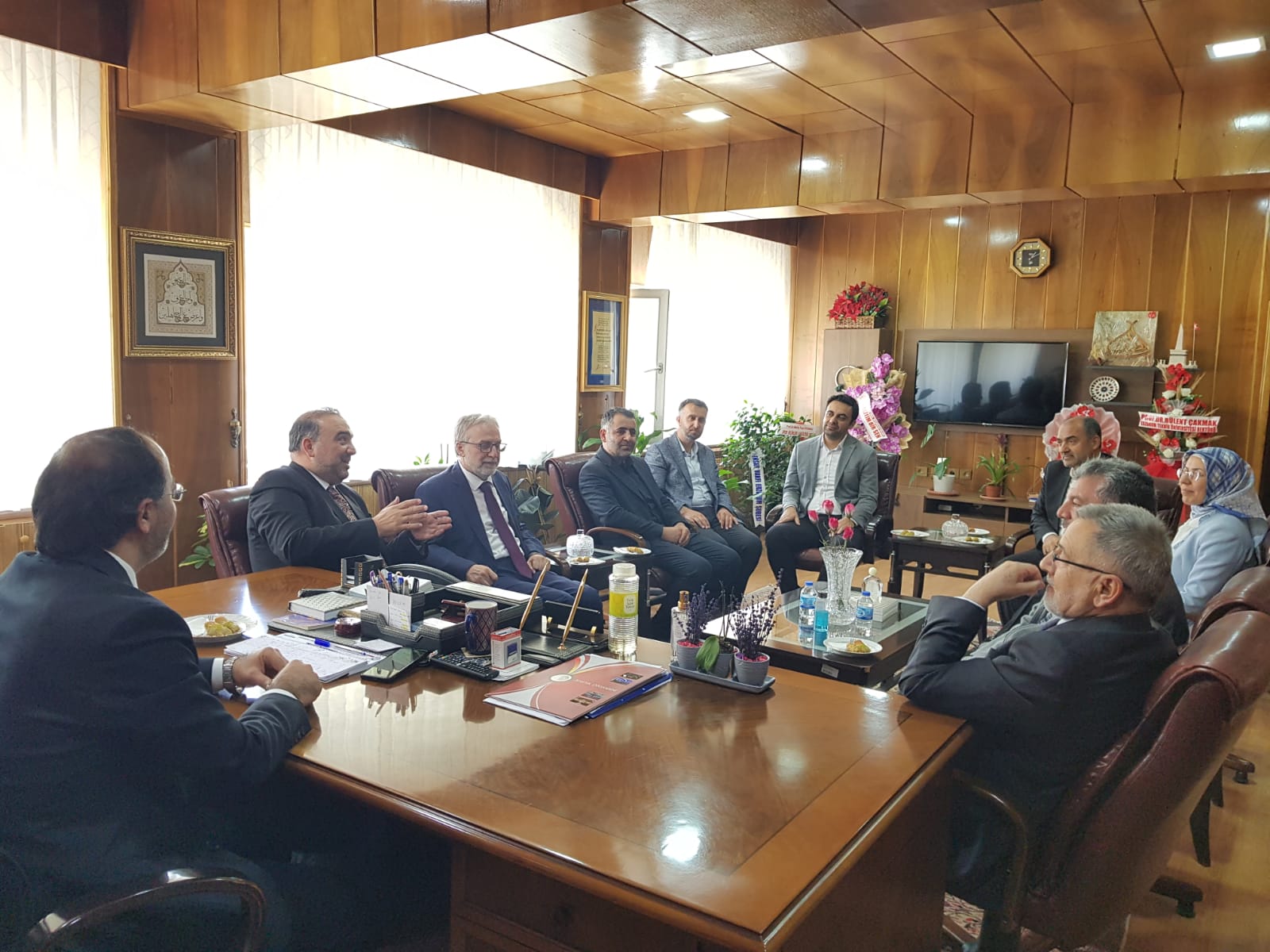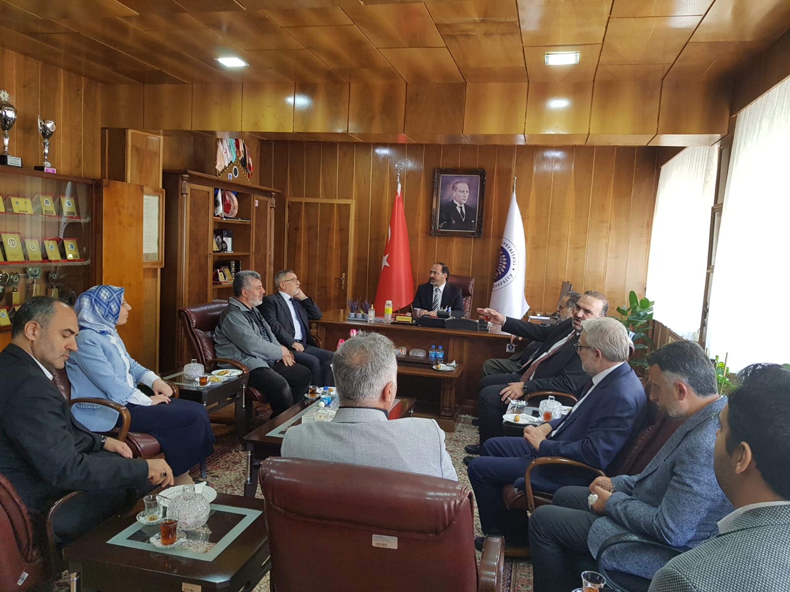 17 Nisan 2024 Dekan KIZILGEÇİT’e Ziyaret Türkiye Diyanet Vakfı Genel Müdürü İzani TURAN, Türkiye Diyanet Vakfı Mütevelli Heyeti Üyesi Doç. Dr. Fatih Kurt ve Erzurum İl Müftüsü Dr. Rüstem Can Dekanımız Prof. Dr. Muhammed KIZILGEÇİT’e “hayırlı olsun” ziyaretinde bulundu.