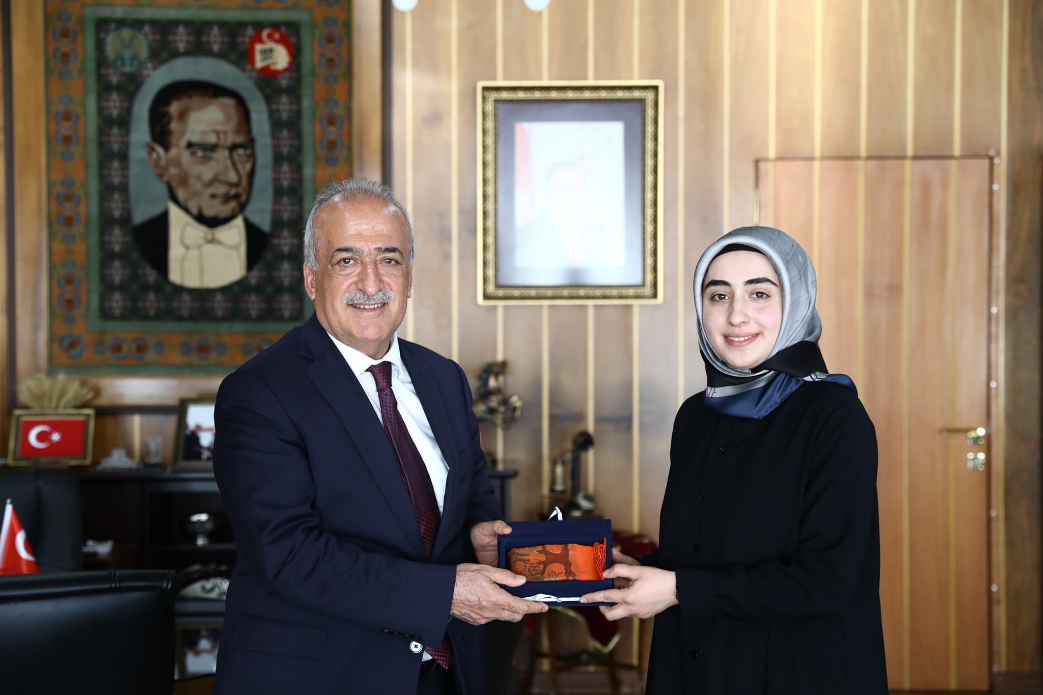 İlahiyat-İslami İlimler Fakülteleri ve Diyanet İşleri Başkanlığı tarafından düzenlenen Kız Öğrenciler Arası Hafızlık Yarışması ve İlahiyat-İslami İlimler Fakülteleri Arası Kur’ân-ı Kerîm’i Güzel Okuma Yarışmasında öğrencilerimize başarılarından dolayı Atatürk Üniversitesi Rektörü Prof.Dr.Ömer ÇOMAKLI tarafından hediye takdimi yapıldı.