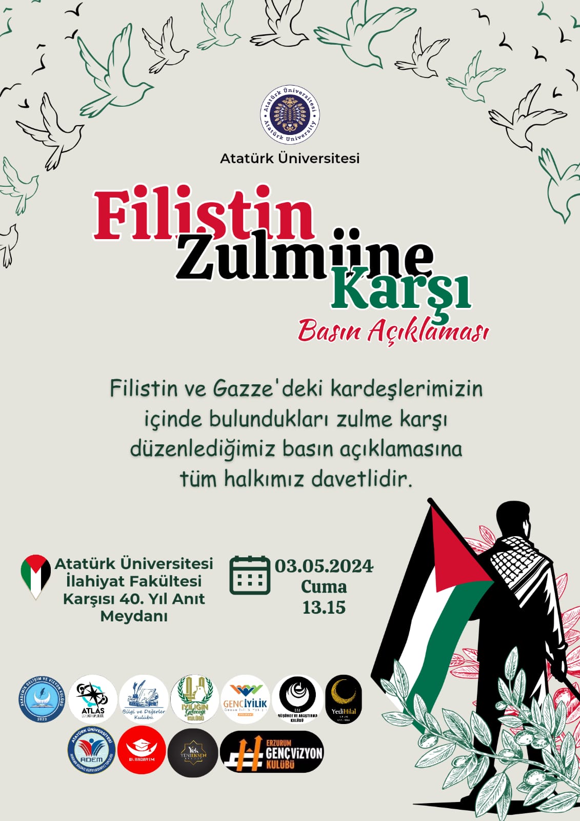 Atatürk Üniversitesi öğrencileri ve akademisyenleri, bu etkinliklerle Filistin’e yönelik desteklerini bir kez daha göstermiş oldu. Katılımcılar, etkinliklerin Filistin’e yönelik dayanışmanın güçlenmesine katkı sağlayacağını dile getirdiler.