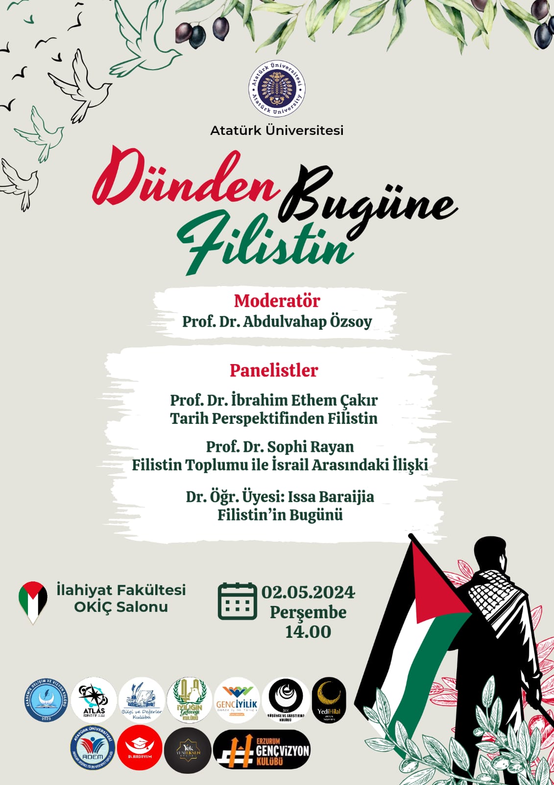 Ayrıca, Filistin meselesi ve toplumu hakkında bilgi ve fikir alışverişi yapmak üzere bir panel düzenlendi. Panelde, Prof. Dr. İbrahim Ethem Çakır, Prof. Dr. Sophi Rayan ve Dr. Öğr. Üyesi Issa Baraijia, Filistin’in tarihinden bugüne kadar olan süreci ve İsrail ile olan ilişkileri ele aldılar.