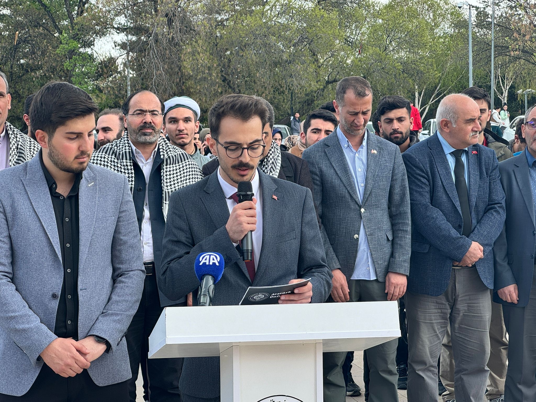 Filistin’e destek etkinlikleri kapsamında düzenlenen “Kudüs Bülteni” programı, Atatürk Üniversitesi İlahiyat Fakültesi ve üniversite kulüpleri iş birliğiyle organize edildi. 40. Yıl Anıt Meydanı’nda gerçekleşen etkinliklere, akademisyenler, öğrenciler ve şehir halkı yoğun ilgi gösterdi.