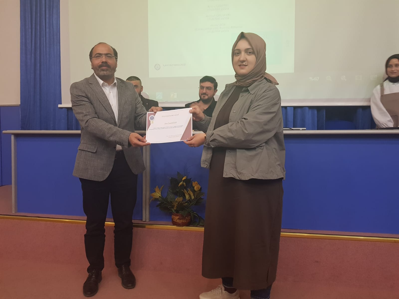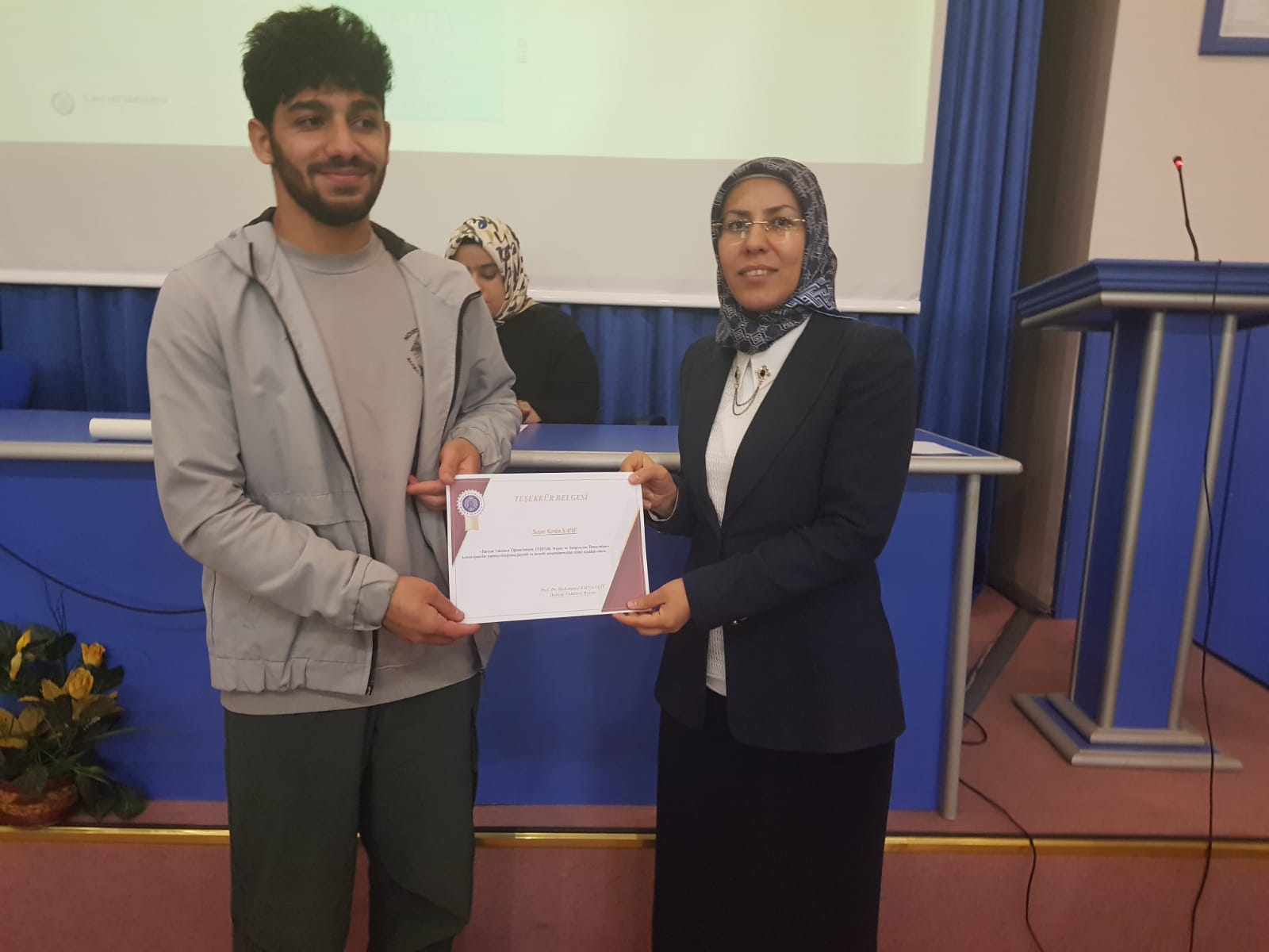 Etkinlik sonunda katılımcılara teşekkür belgeleri takdim edildi. Teşekkür belgeleri verilirken çekilen fotoğraflar etkinliğe dair güzel anılar olarak kaydedildi.