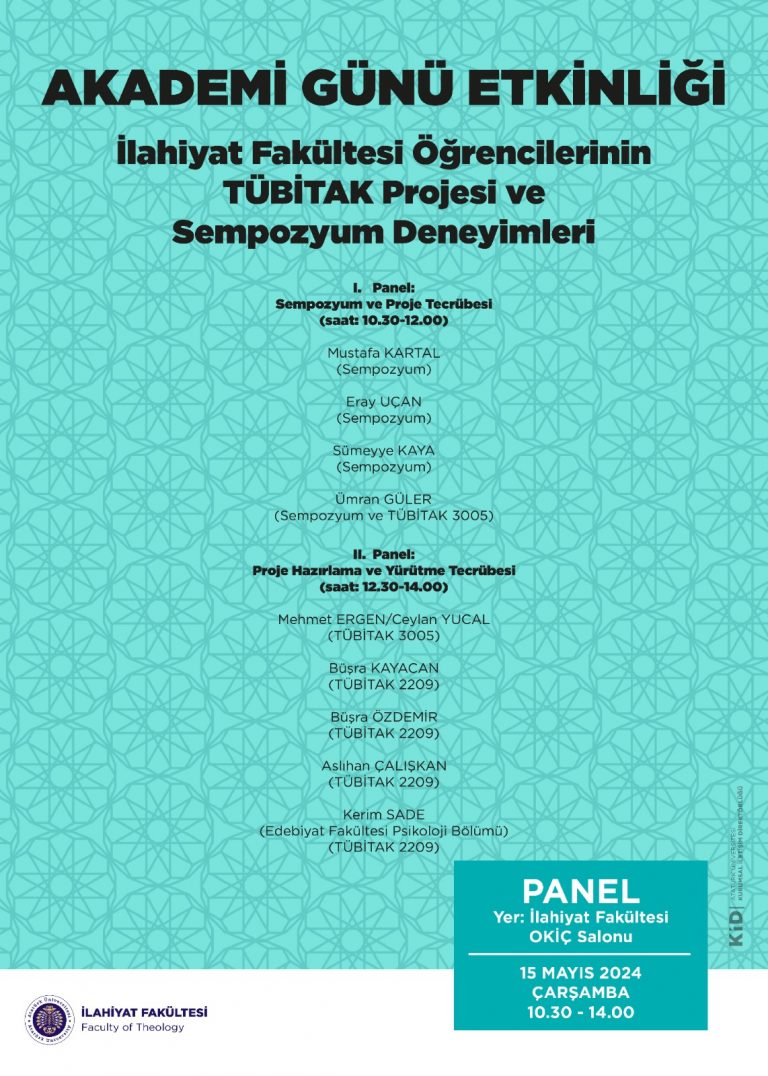 15 Mayıs: İlahiyat Fakültesi Öğrencilerinin TÜBİTAK Projesi ve Sempozyum Deneyimleri