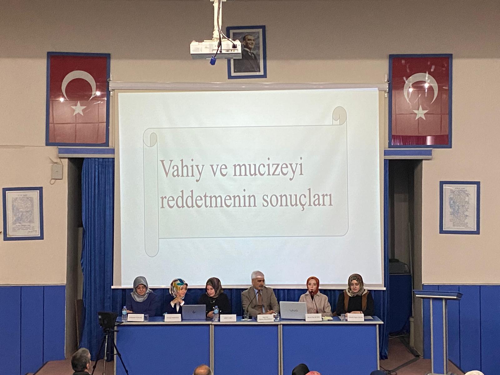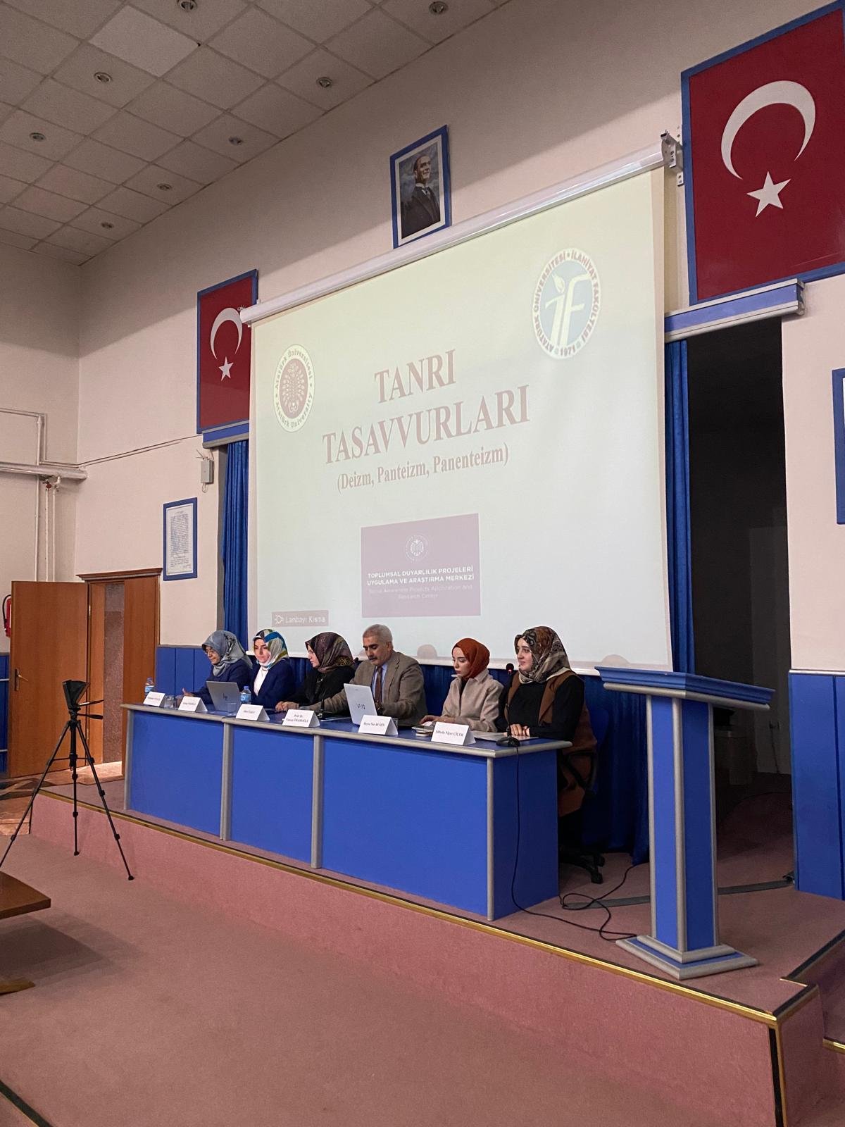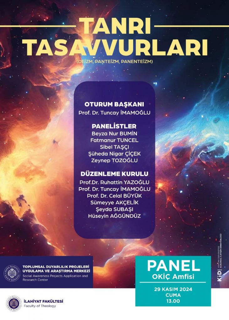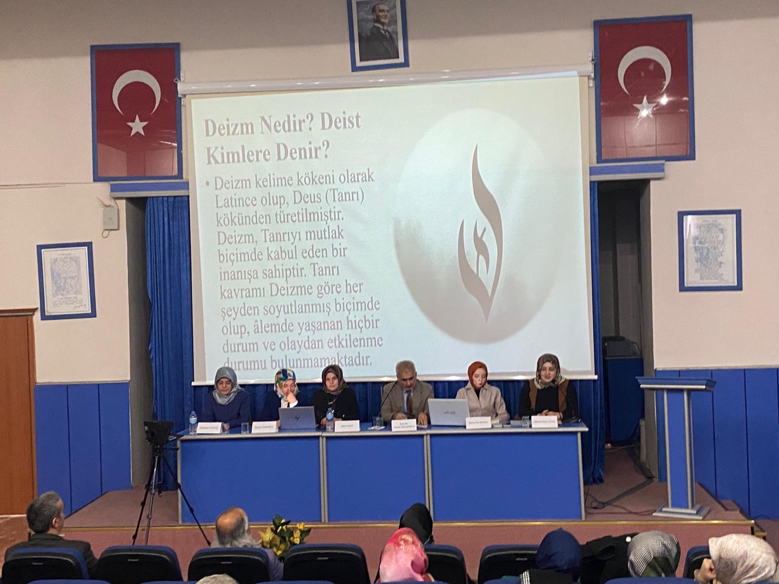 Deizm, Panteizm ve Panenteizmin ele alındığı panelde, günümüz dünyasında oldukça popüler olan bu Tanrı Tasavvurlarının tarihi seyri ve ortaya çıkardığı temel problemlere işaret edildi. Bu Tanrı tasavvurlarının tamamının Batı dünyasına ait olduğuna vurgu yapılan panelde Deizm, Panteizm ve Panenteizmin mantıksal temelleri ve eleştirisi ortaya konularak gençlerimize bunların çıkmazlarının etraflıca anlatılması gerektiği üzerinde özellikle duruldu. Prof. Dr. Tuncay İMAMOĞLu’nun genel bir değerlendirme yaptığı panele öğrencilerimizin yoğun katılımı oldu.
