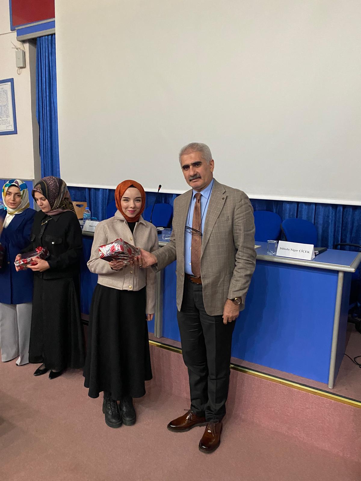 Toplumsal duyarlılığı artırmak ve gençlerimizi bilinçlendirmek amacıyla Fakültemizde “Tanrı Tasavvurları” adı altında bir panel düzenlendi. Oturum başkanlığını Felsefe ve Din Bilimleri Bölümü Din Felsefesi Anabilim Dalı Başkanı Prof. Dr. Tuncay İMAMOĞLU’nun yaptığı panelde öğrencilerimiz Şuheda Nur ÇİÇEK, Beyza Nur BUMİN, Sibel TAŞÇI, Zeynep TOZOĞLU ve Fatmanur TUNCEL Tanrı Tasavvurları hakkında birbirinden güzel ve oldukça derinlikli sunumlar yaptı.