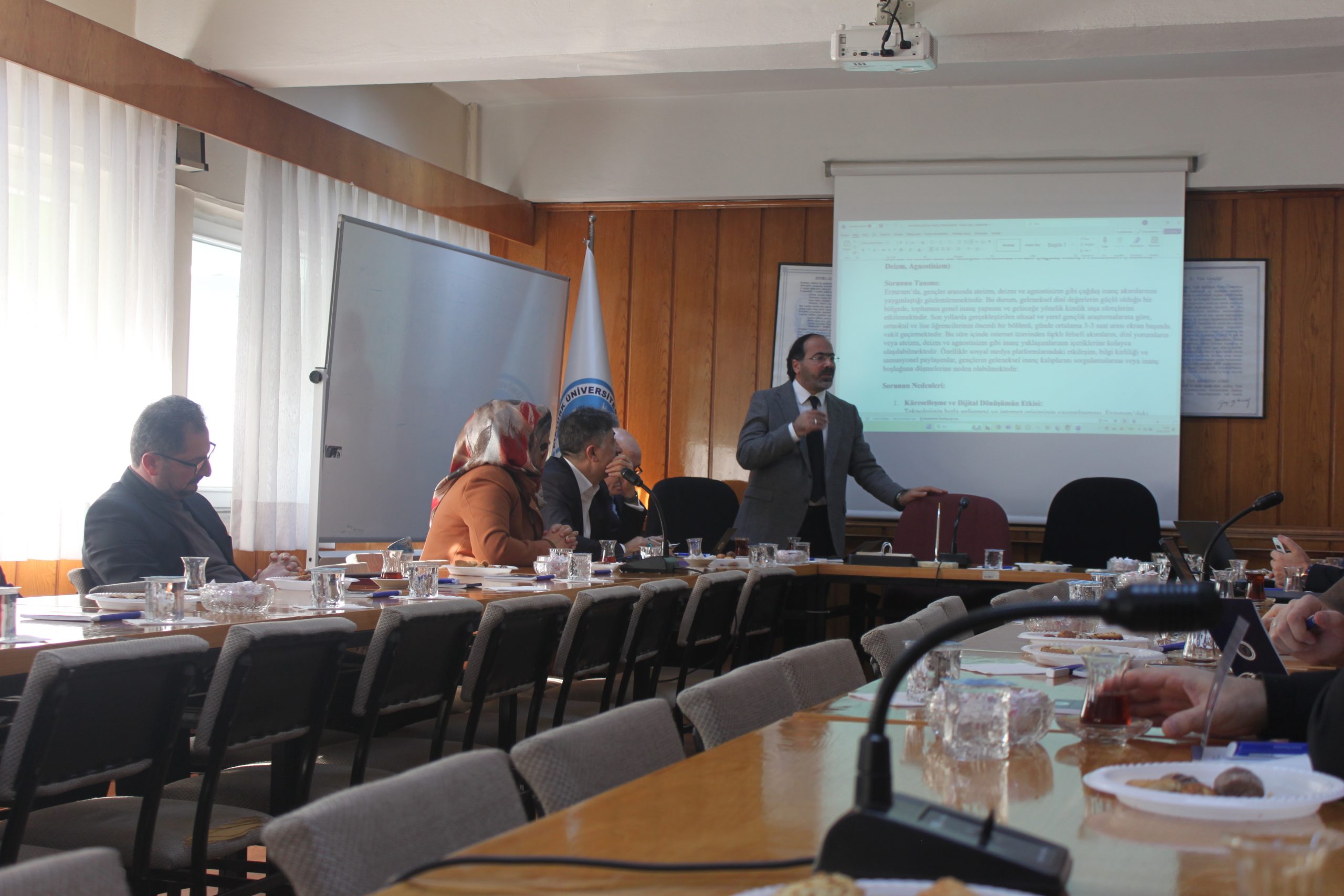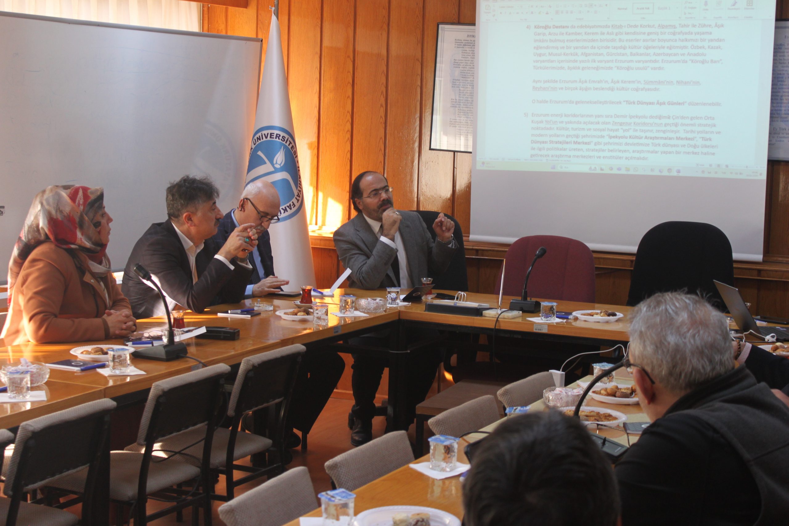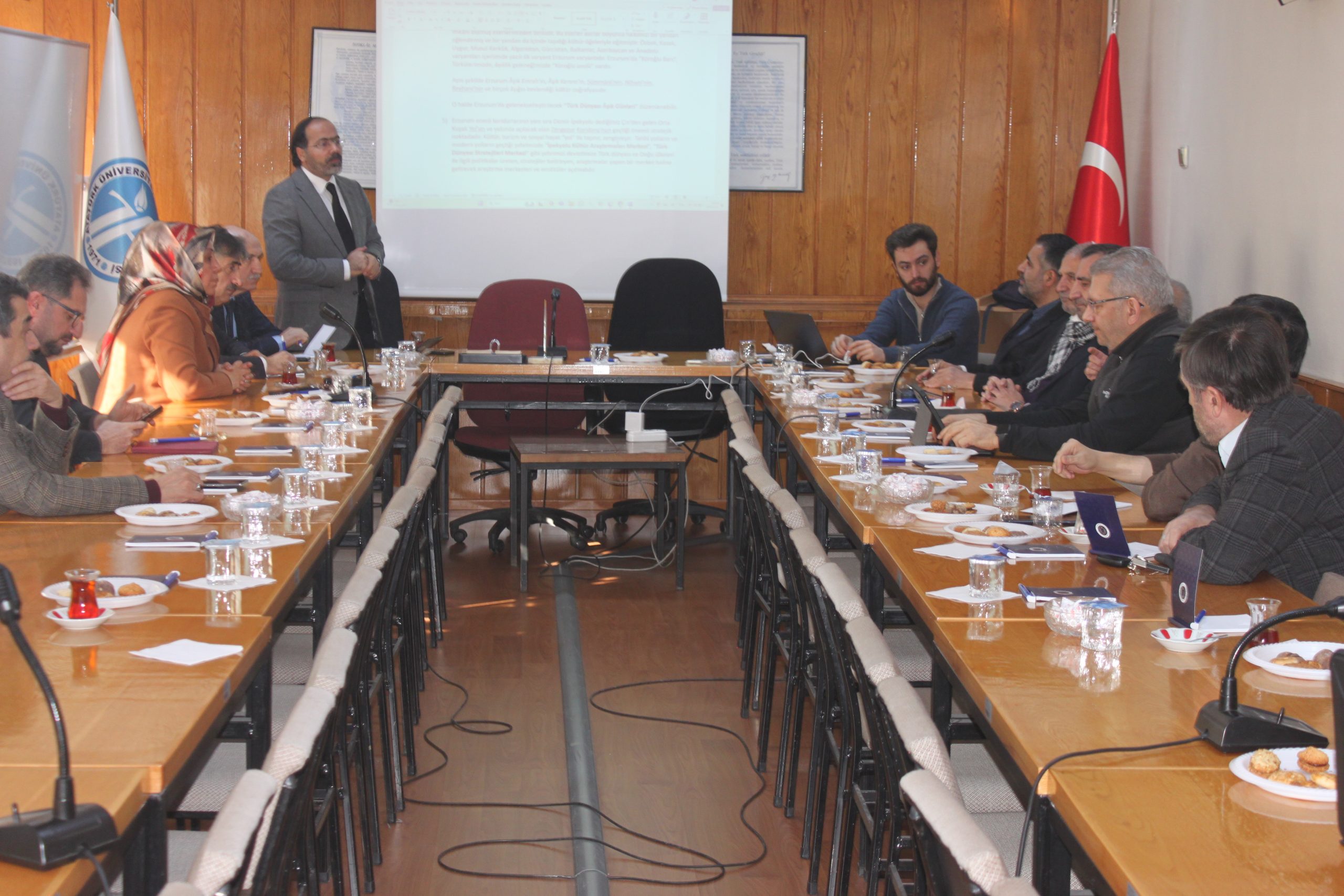 Atatürk Üniversitesi Rektörlüğü öncülüğünde Erzurum’un ihtiyaç ve sorunlarının geniş kapsamlı bir şekilde analiz edilmesi ve bu analizlerden hareketle proje odaklı çözüm önerilerinin geliştirilmesi amacıyla “Erzurum’un Temel İhtiyaç ve Sorunlarının Tespiti ve Çözüm Önerileri Projesi” kapsamında oluşturulan Kültür, Sosyal ve Dini Hayat Komisyonu Dekanımız Prof. Dr. Muhammed KIZILGEÇİT başkanlığında 2. toplantısını gerçekleştirdi. Süreç odaklı, tarafsız ve etkileşim merkezli bir çaba ile yürütülecek olan proje çalışmalarının şehrimize ve ülkemize hayırlar getirmesini temenni ediyoruz.
