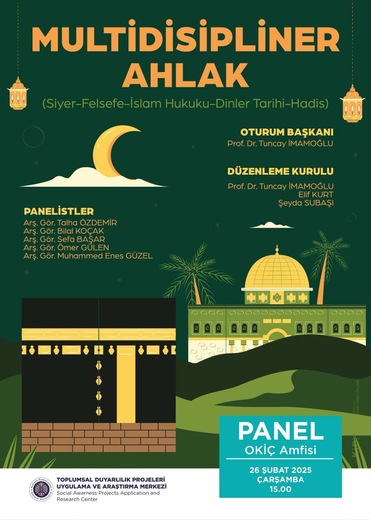 Toplumsal duyarlılık çerçevesinde Fakültemizde 26.02.2025 tarihinde ‘Multidisipliner Ahlak” başlığı altında bir panel düzenlendi. Fakültemiz Felsefe ve Din Bilimleri Öğretim Üyesi Prof. Dr. Tuncay İMAMOĞLU, Yüksek Lisans öğrencileri Şeyda SUBAŞI ve Elif KURT tarafından düzenlenen panelin başkanlığını Prof. Dr. Tuncay İMAMOĞLU yaptı.