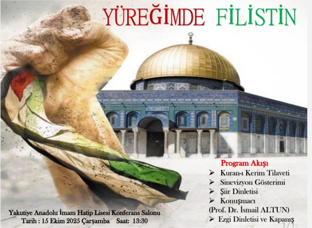 Fakültemiz öğretim üyesi Prof. Dr. İsmail ALTUN, 15 Ekim 2025 tarihinde Erzurum Yakutiye Anadolu İmam Hatip Lisesinde erkek öğrencilere yönelik “Yüreğimde Filistin” konulu bir konferans gerçekleştirdi.