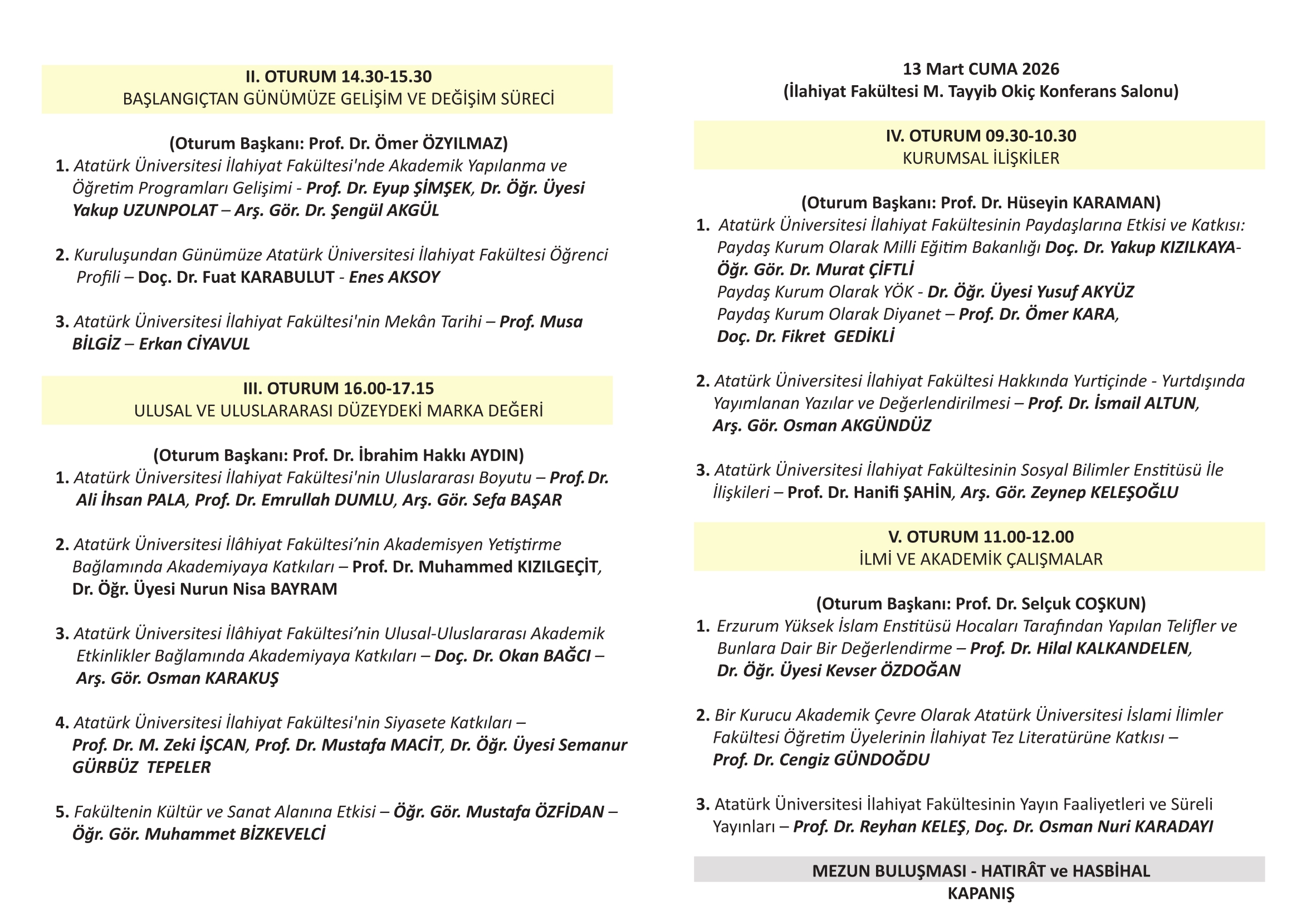 günümüze fakültemize emek vermiş akademisyenlerimizin hatıra ve tecrübelerini paylaşabilecekleri bir ilmî ve kültürel zemin oluşturmak amacıyla, 12–13 Mart 2026