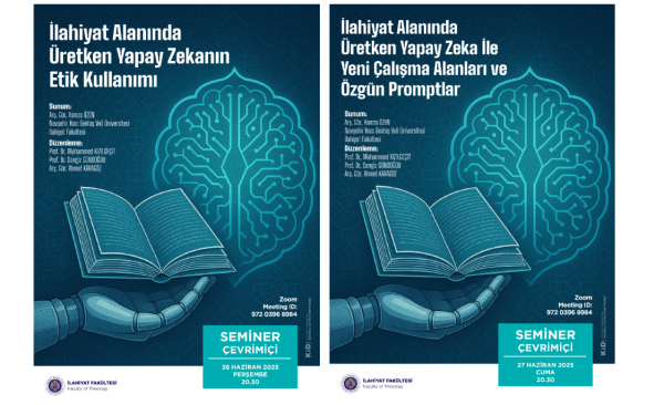 2 Temmuz 2025 “İlahiyat Alanında Üretken Yapay Zekânın Etik Kullanımı” ve “İlahiyat Alanında Üretken Yapay Zekâ ile Yeni Çalışma Alanları ve Özgün Promptlar” adlı iki çevrimiçi seminer gerçekleştirildi