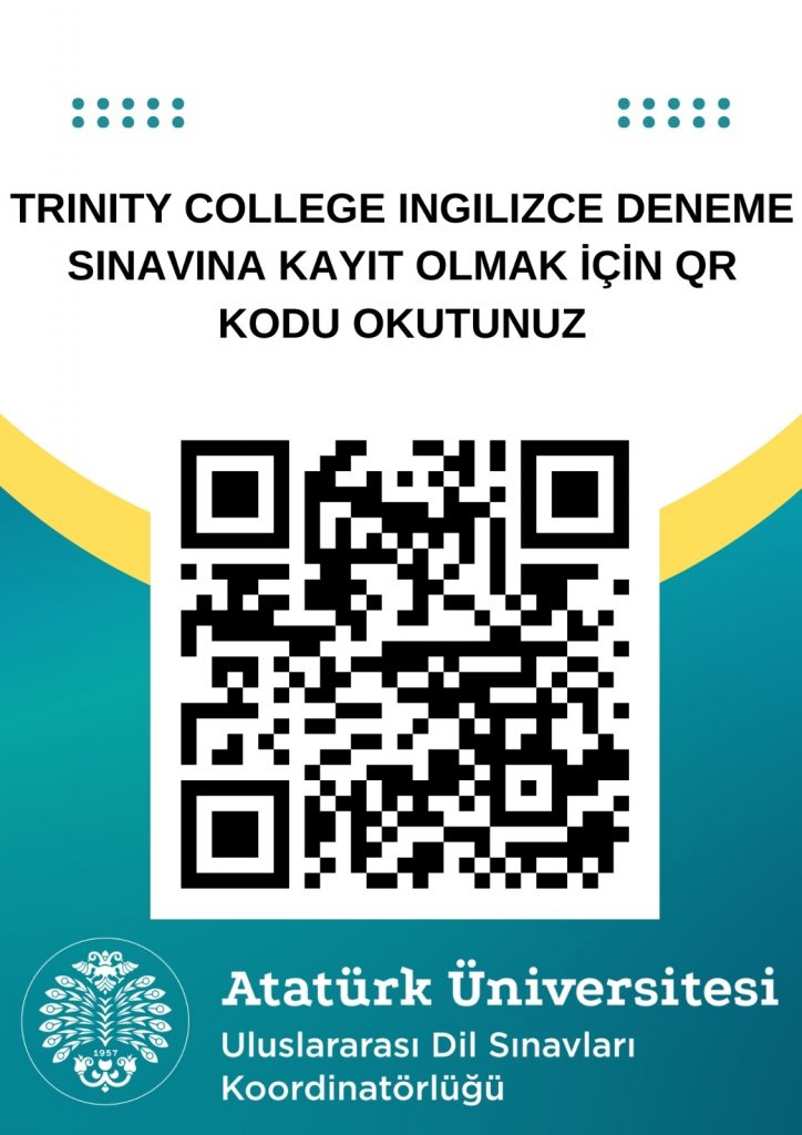 19 Şubat 2025 Trinity College Deneme Sınavı Facebook Twitter WhatsApp Trinity College’ın düzenlediği ücretsiz sınava kayıt yaptırmak isteyen öğrenciler kare kodu okutarak kayıt işlemini gerçekleştirebilirler.