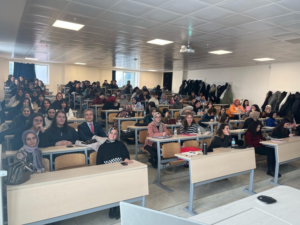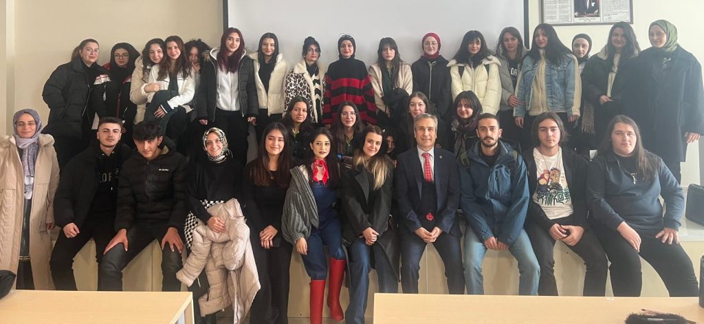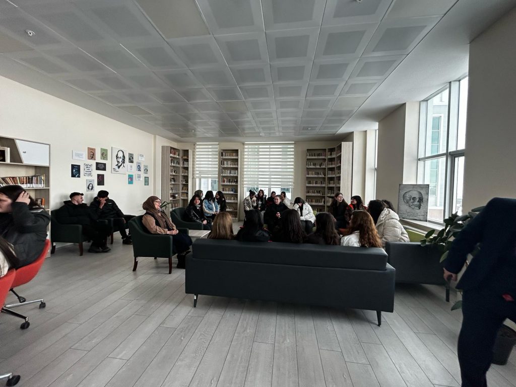 Bölümümüzün dış paydaşlarından olan Yakutiye Erzurum Mecidiye Anadolu Lisesi’nin dil sınıfı öğrencileri, 24 Şubat 2025 tarihinde Din Kültürü ve Ahlak Bilgisi Öğretmeni Elif Kenan Genç ve Matematik Öğretmeni Eylem Güler rehberliğinde bölümümüze ziyarette bulundu. Ziyaret kapsamında öğrenciler, önce değerli öğretim üyemiz Doç. Dr. Mehmet Fikret Arargüç’ün şiir dersine katılarak dersin işleyişini deneyimleme fırsatı buldular. Derse aktif katılım sağlayan öğrenciler, şiir üzerine fikirlerini paylaşarak keyifli ve verimli bir ders süreci geçirdiler. Dersin ardından, bölüm öğrencilerimizin de katılım sağladığı bir ortamda misafir öğrencilerle akademik hayat, bölüm müfredatı ve mezuniyet sonrası olanaklar üzerine fikir alışverişinde bulunuldu. Bölüm Başkanımız Prof. Dr. Mukadder Erkan, Doç. Dr. Mehmet Fikret Arargüç, Araştırma Görevlimiz Nadir Hakan Yıldız ve öğretmenlerimiz Elif Kenan Genç ile Eylem Güler’in katılımıyla gerçekleşen British Corner’daki çay sohbetinde, misafirlerimiz bölümümüz hakkında merak ettikleri tüm sorulara yanıt aldı. Samimi bir atmosferde gerçekleşen bu buluşmanın ardından Mecidiye Anadolu Lisesi öğrencilerini uğurlarken, kendilerine başarı dileklerimizi ilettik. Ziyaret boyunca gösterdiği özel alaka ve misafirperverliği için Araştırma Görevlimiz Nadir Hakan Yıldız’a ayrıca teşekkür ederiz. Bölümümüzü ziyaret ettikleri için öğrencilere ve öğretmenlerimize teşekkür ediyor, akademik hayatlarında başarılarının devamını diliyoruz.