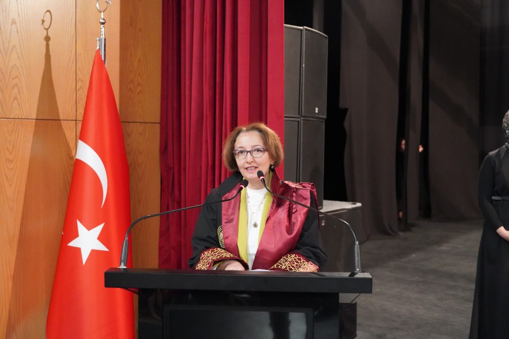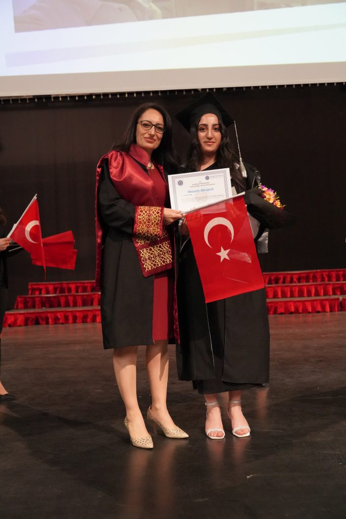 Teknik Bilimler Meslek Yüksekokulu 2024-2025 Eğitim-Öğretim Yılı Mezuniyet Töreni 19 Haziran Perşembe günü Rektörlük 15 Temmuz Milli İrade Salonu’nda gerçekleştirildi. İş Sağlığı ve Güvenliği Programı mezun öğrencileri ve ailelerinin yoğun katılım sağladığı tören; Saygı Duruşu ve İstiklal Marşı, açılış konuşmaları, dereceye giren ve mezun olan tüm öğrencilere belgelerinin takdimi ve kep atma merasimi ile tamamlandı. 2024-2025 Eğitim-Öğretim Yılını okul ikincisi olarak tamamlayan öğrencimiz Meltem KAMİ‘ye başarı belgesi ve ödülleri okul müdürümüz Prof. Dr. Hayrunnisa NADAROĞLU tarafından verildi.