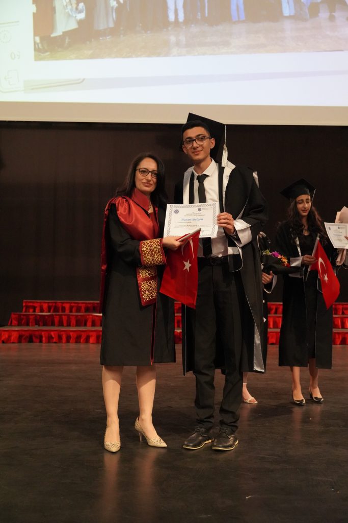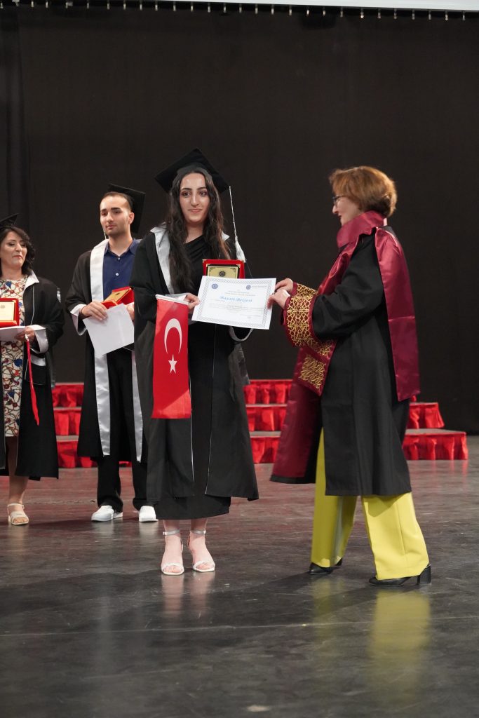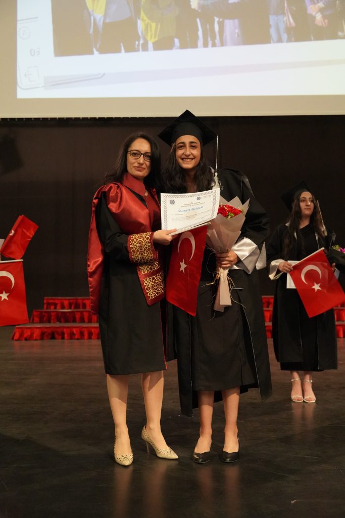 Bölümde dereceye giren öğrencilere (Birinci Meltem KAMİ, İkinci Eda Nur KURT, Üçüncü Muhammet Yusuf YILDIRIM) belgeleri Bölüm Başkanı Prof. Dr. Ebru BOZKURT ve mezun olmaya hak kazanan tüm öğrencilere belgeleri Öğr. Gör. Ömer KARABULUT ve Öğr. Gör. Emre DEMİR tarafından takdim edildi.