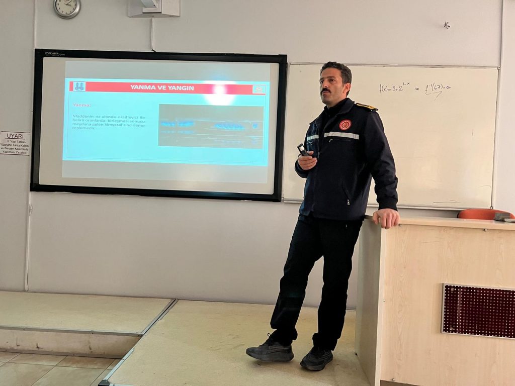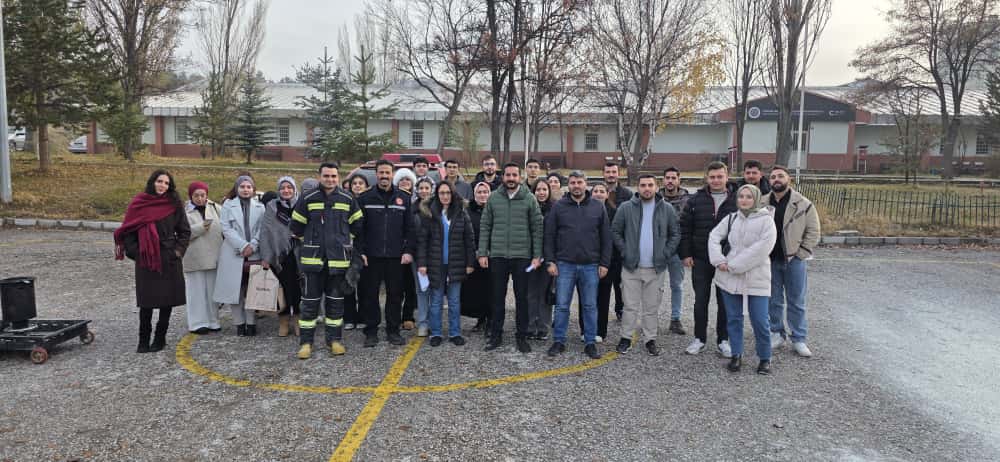 İş Sağlığı ve Güvenliği 2. sınıf öğrencileri için Yangın ve Yangından Korunma dersi kapsamında 20 Kasım 2025 tarihinde Yangın Eğitimi ve Tatbikatı gerçekleştirildi. Eğitime verdikleri destekten dolayı Erzurum Büyükşehir Belediyesi İtfaiye Daire Başkanlığı eğitim amiri Halit ULUDAĞ ve eğitim personeli Emirhan TÜRKOĞLU’na teşekkür ederiz.