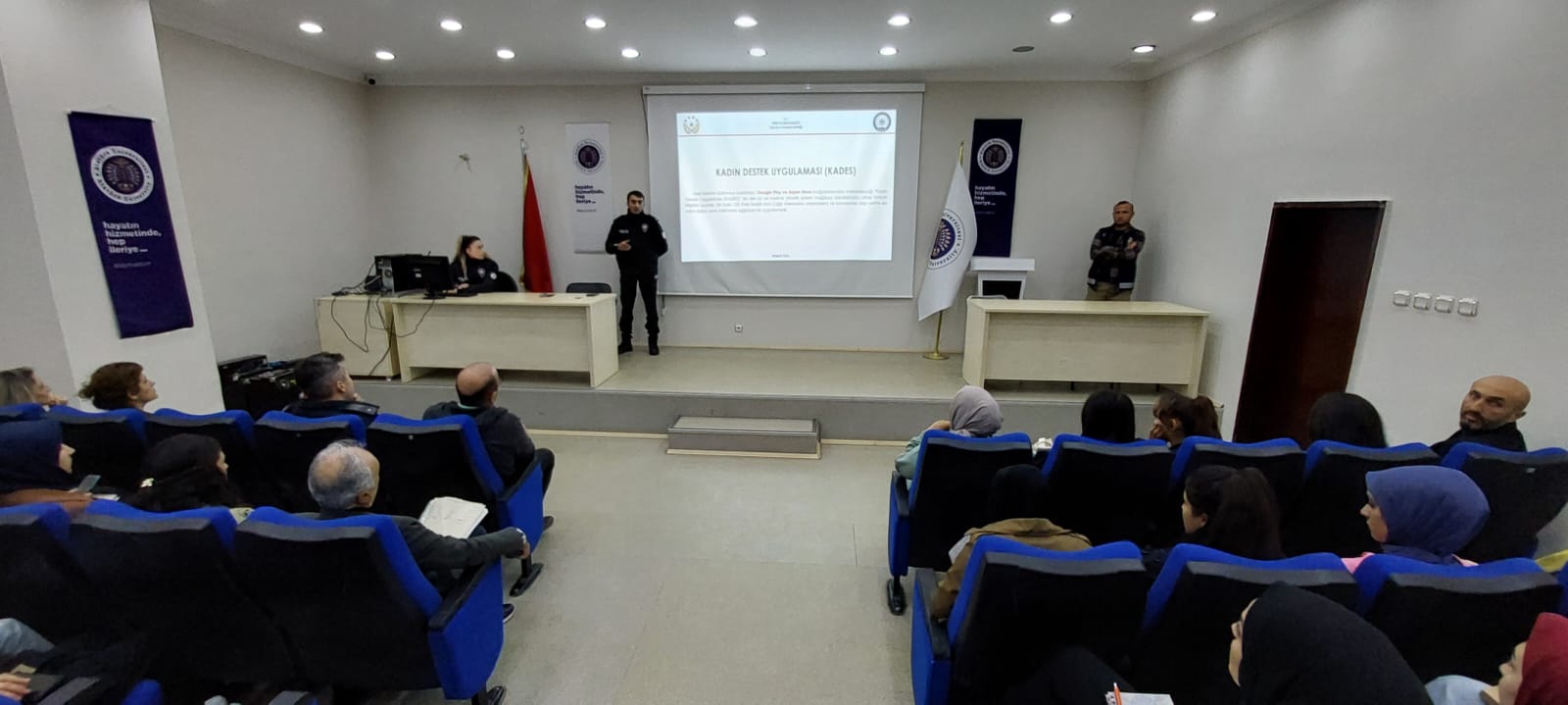 İspir Hamza Polat Meslek Yüksekokulu ve İspir Emniyet Amirliği iş birliğiyle düzenlenen etkinlikte, Kadın Acil Destek (KADES) uygulamasının tanıtımı yapıldı. Öğrencilerimizin yoğun ilgi gösterdiği programda, KADES uygulamasının kadınların karşılaştıkları şiddet ve acil durumlarda güvenli bir şekilde yardım alabilmeleri için sunduğu kolaylıklar detaylı bir şekilde anlatıldı.