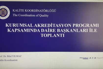 Kurumsal Akreditasyon Programı Kapsamında Daire Başkanları ile bir araya gelindi. Toplantıda Üniversitemizin kalite güvence, eğitim-öğretim, araştırma, toplumsal katkı ve yönetim kategorilerinde göstergelerin incelenmesi neticesinde gelinen aşama Daire Başkanları ile paylaşıldı. Daire Başkanlarından öğrencilerle ilgili olanakları ve sunulan hizmetler hakkında görüşlerini paylaşmaları istendi.