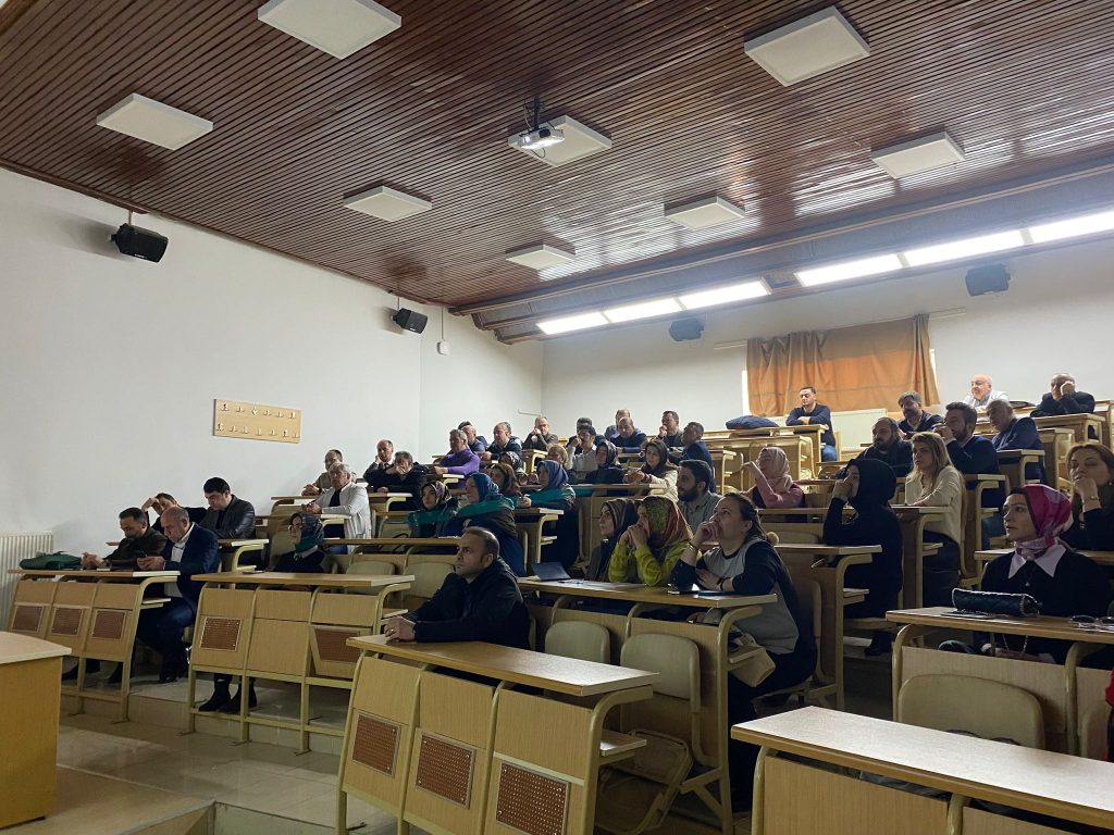 Eğitim toplantısı, Prof.Dr.Bilal Yılmaz tarafından gerçekleştirildi. Program kapsamında üniversitede yürütülen kalite güvence sistemleri, akreditasyon süreçleri ve Mesleki Eğitim Değerlendirme ve Akreditasyon Derneği ölçütleri doğrultusunda özdeğerlendirme raporunun hazırlanması ele alındı.