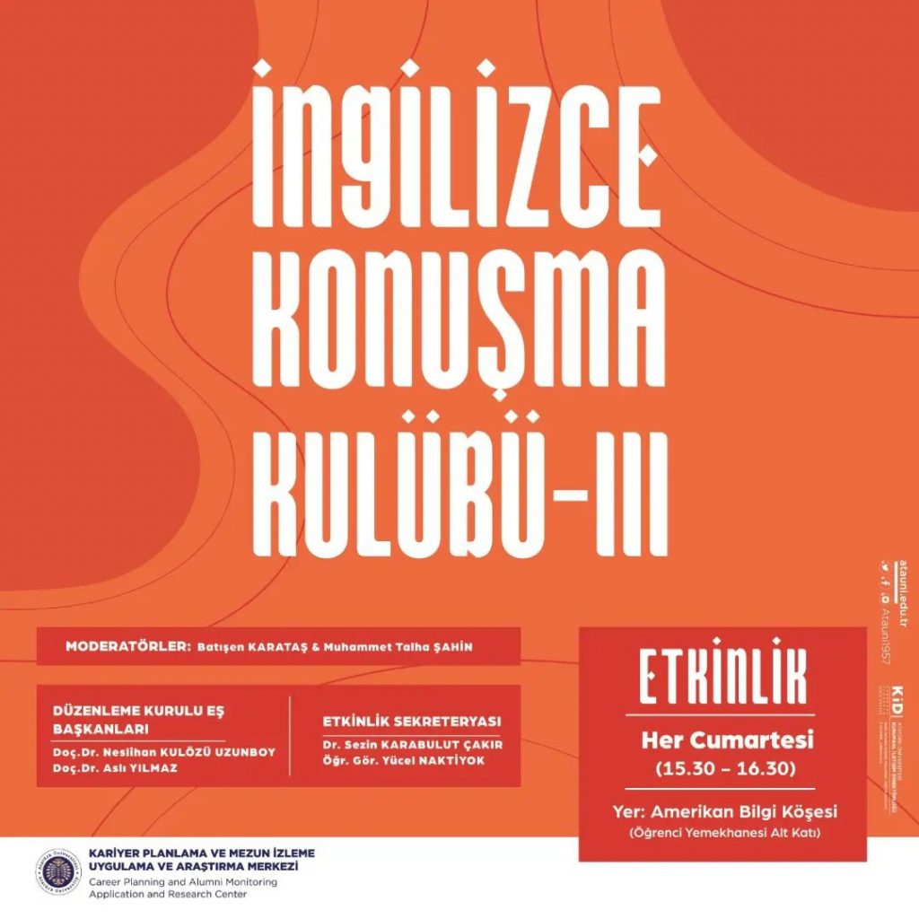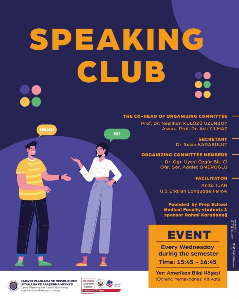 Konuşma kulüpleri her eğitim-öğretim yılının güz ve bahar dönemlerinde, başta İngilizce olmak üzere Almanca, Fransızca, İtalyanca, İspanyolca ve Rusça gibi farklı dillerde açılan ve talep eden üniversitemiz öğrencilerinin katılımlarına açık olan, 10 haftalık düzenli olarak gerçekleştirilen ve dönem sonunda düzenli katılım gösteren öğrencilere katılım belgesi verilen yabancı dilde konuşma etkinlikleridir.