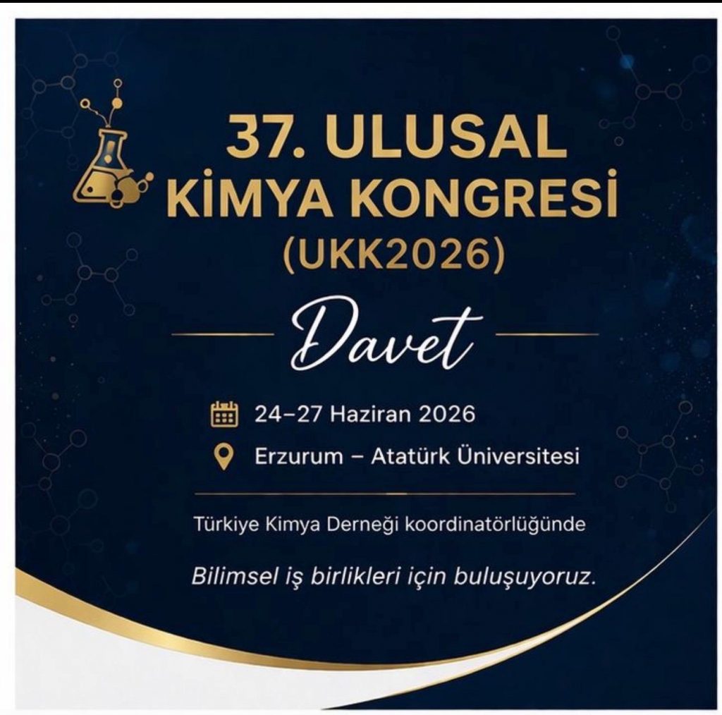 Türkiye Kimya Derneği koordinatörlüğünde ve Atatürk Üniversitesi iş birliği ile düzenlenecek olan 37. Ulusal Kimya Kongresi (UKK2026), 24-27 Haziran 2026 tarihleri arasında Erzurum’da gerçekleştirilecektir. Kimya alanında ülkemizin en köklü ve prestijli bilimsel organizasyonlarından biri olan bu kongre, akademisyenleri, araştırmacıları ve öğrencileri aynı çatı altında buluşturarak bilimsel etkileşimi ve iş birliklerini güçlendirmeyi amaçlamaktadır.