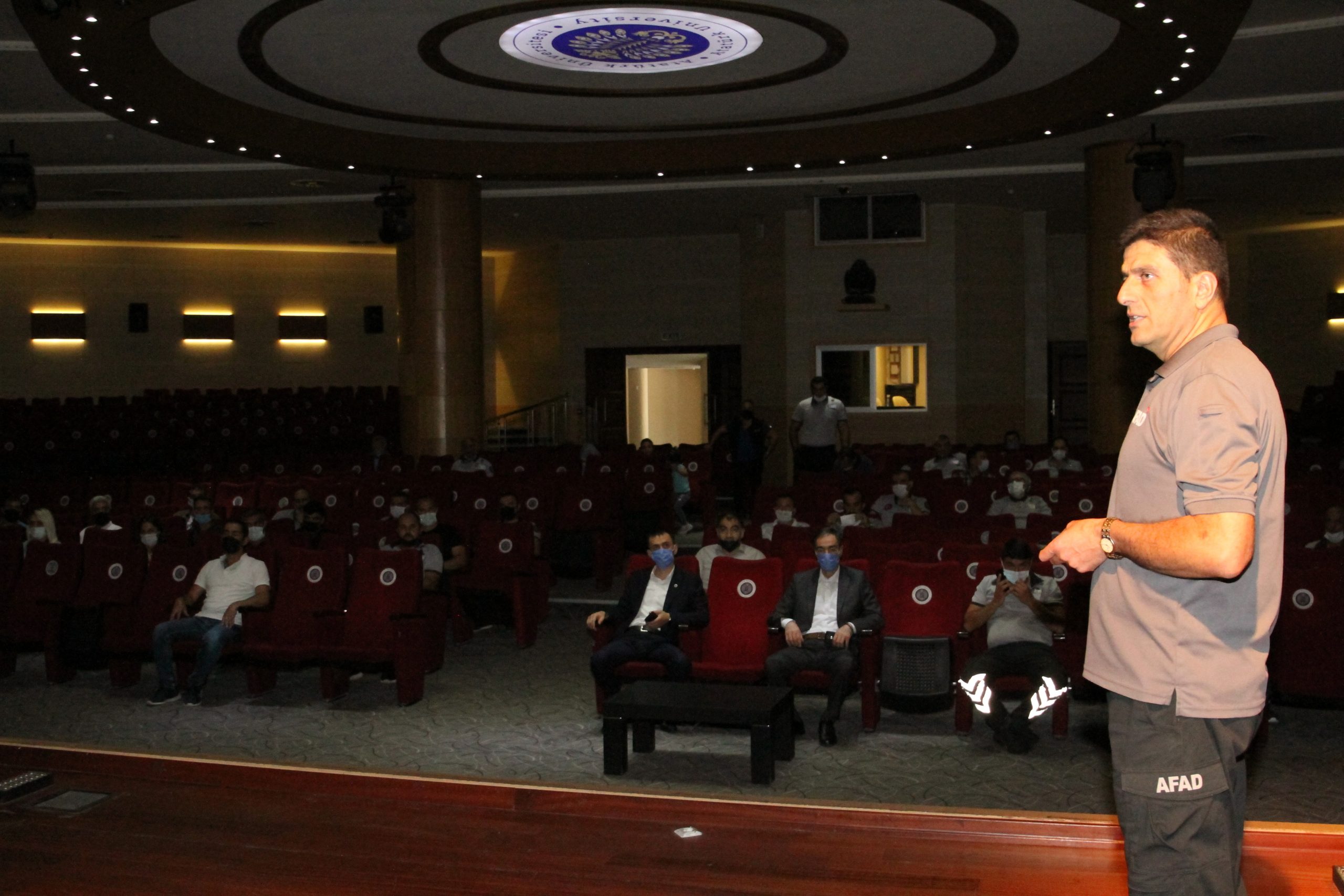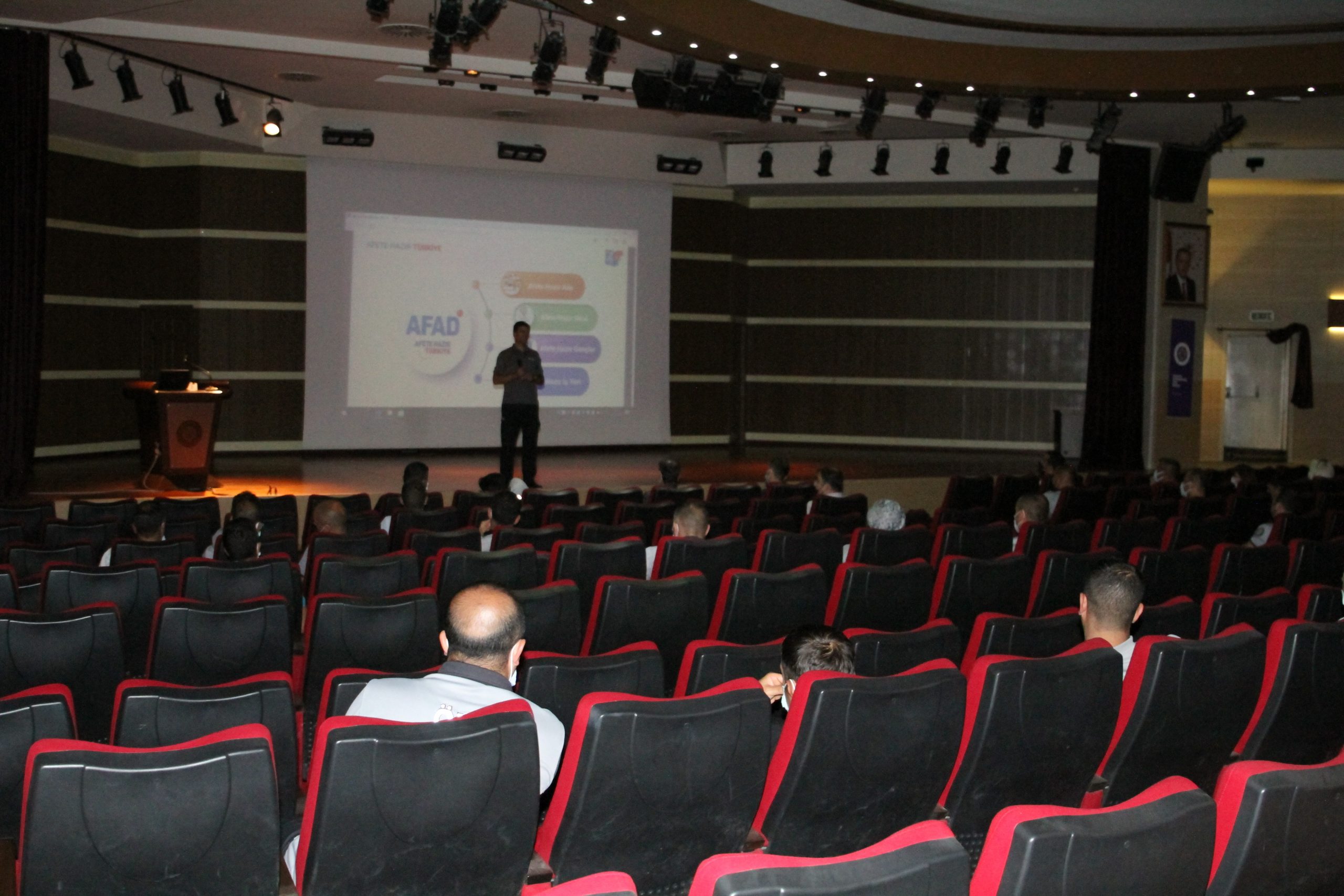 Bakanımız Sayın Süleyman SOYLU’ nun talimatları ileafet ve acil durumlar ile etkin bir mücadele için işbirliği ve dayanışmaanlayışıyla kurumlarımızın hazırlanması, vatandaşlarımızın farkındalık vesorumluluk düzeyini arttırıcı eğitim faaliyetleri ile mevcut kapasiteninyükseltilmesi amacıyla 2021 yılı ”Türkiye Afet Eğitim Yılı” olarak ilan edilmişolup bu kapsamda özel güvenlik görevlilerine 12-13-14/07/2021 tarihlerinde gruplar halinde Afet Farkındalık Eğitimi verilmiştir.