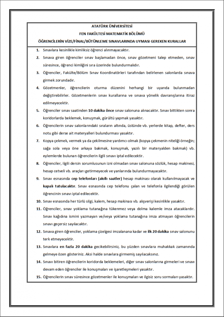 SINAV KURALLARI