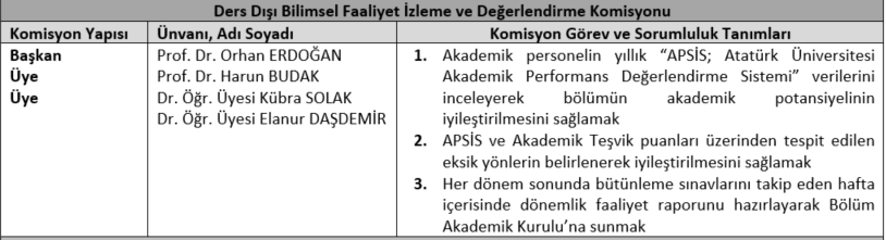 Ders Dışı Bilimsel Faaliyet İzleme ve Değerlendirme Komisyonu