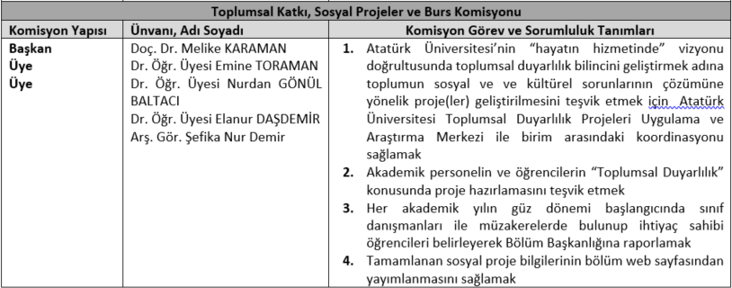 Toplumsal Katkı, Sosyal Projeler ve Burs Komisyonu