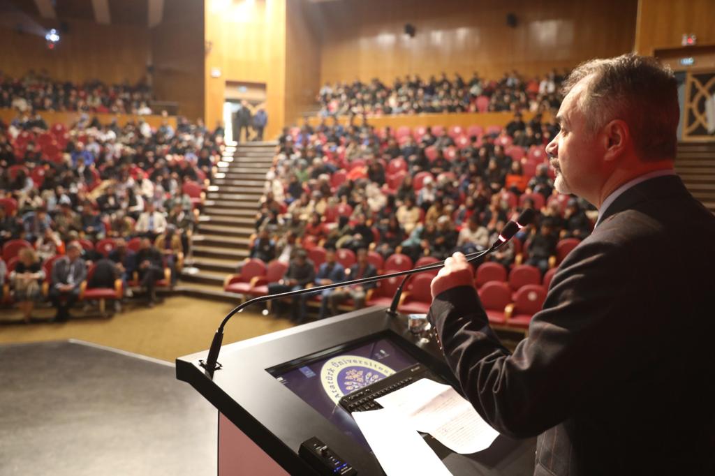 Kültür Merkezi 15 Temmuz Milli İrade Salonunda gerçekleştirilen etkinliğe Rektör Yardımcısı Prof. Dr. Atilla Keskin, Öğrenci Dekanı Prof. Dr. Yaşar Totik ile yönetimi, ilgili fakültelerin temsilcileri, akademisyenler, öğretmenler ile çok sayıda öğrenci katıldı.