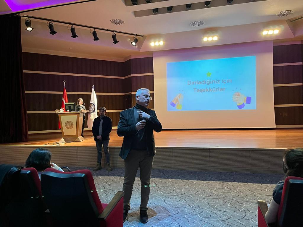 Üniversite bünyesinde çalışmalarını yürüten öğrenci kulüp topluluk ve takımlarının faaliyetlerini daha hızlı ve kontrollü bir biçimde gerçekleştirebilmeleri için Kulüp Yönergesindeki düzenlemeler ve öğrenci faaliyetleri için Üniversite Bilgi Yönetim Sistemi (ÜBYS) etkinlik takip sistemi kullanımı ve işleyişi hakkında Öğrenci Dekan Yardımcısı Doç. Dr. Meral Oltulu tarafından önemli bilgiler verildi. Sununun sonunda Dijital Dönüşüm Ofisinden Arş. Gör. Mustafa Furkan Keskenler tarafından bir uygulama yapılarak Etkinlik Takip Sistemi anlatıldı.