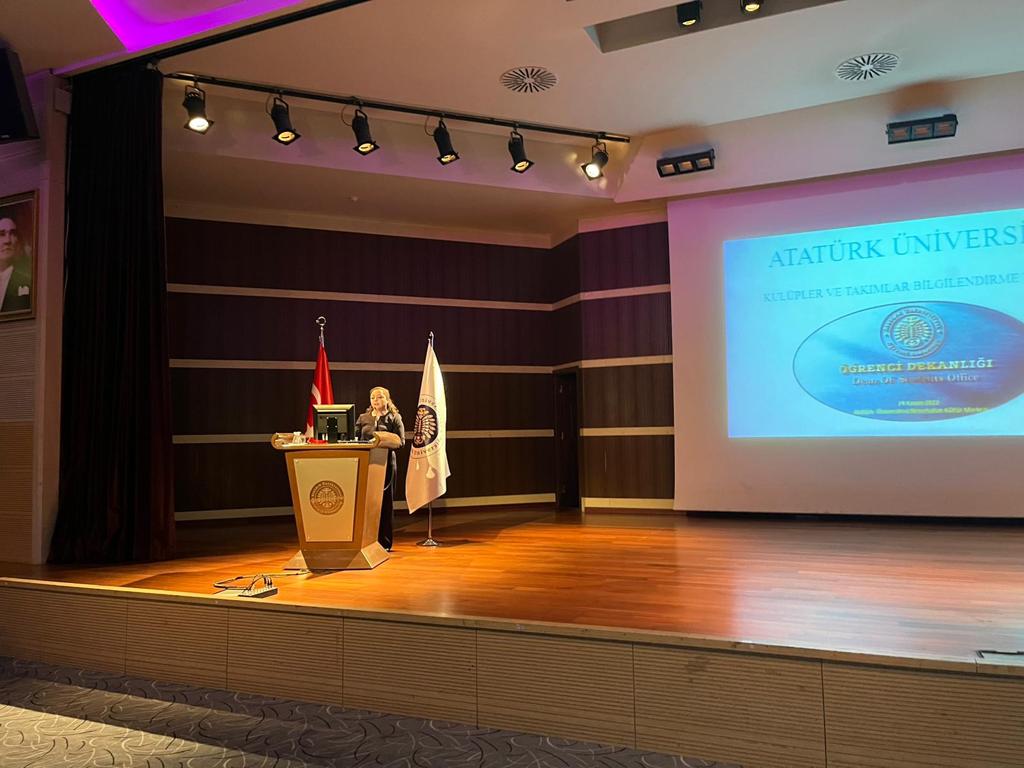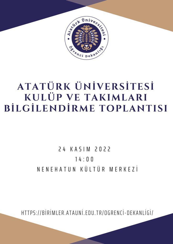 Atatürk Üniversitesi Öğrenci Dekanlığının düzenlemiş olduğu “Atatürk Üniversitesi Kulüp, Topluluk ve Takımlarını Bilgilendirme Toplantısı” etkinliği Nenehatun Kültür Merkezinde gerçekleştirildi.