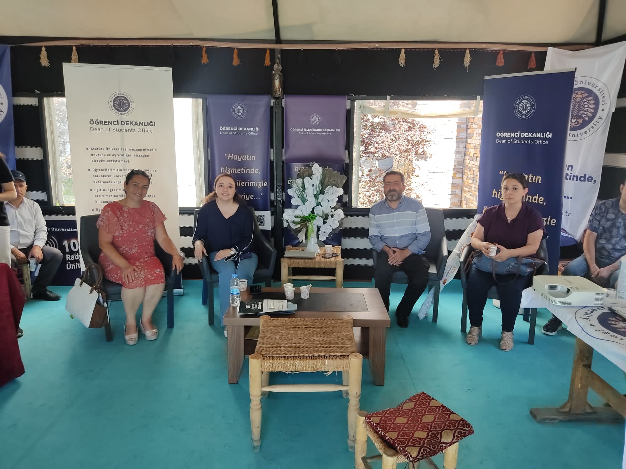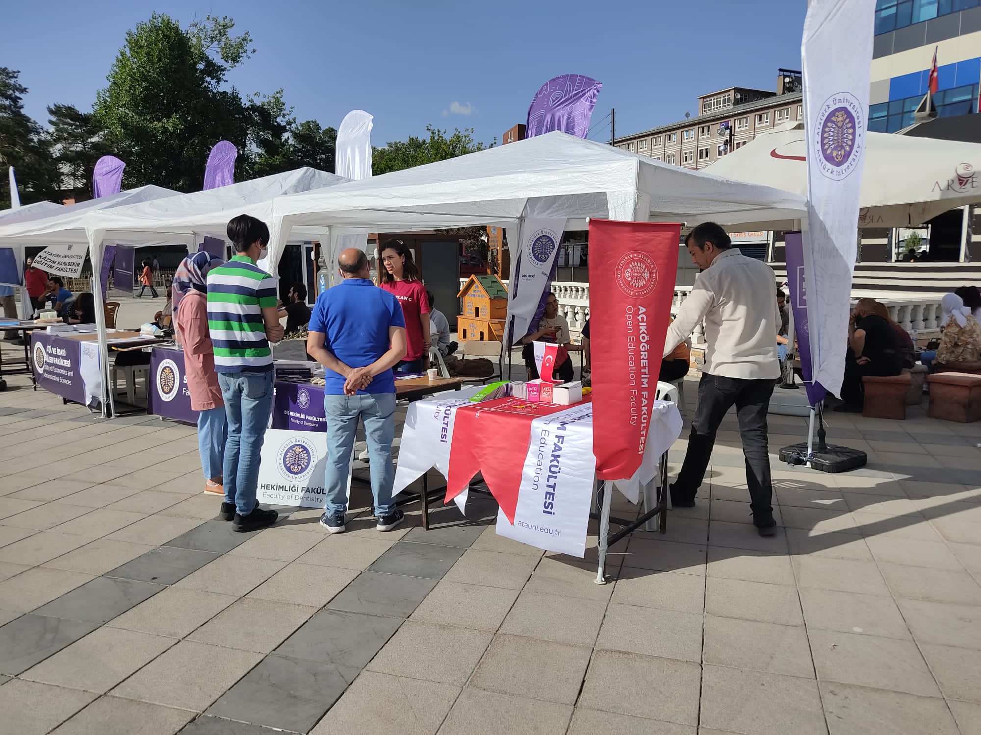 Bu vesile ile “Hayatın hizmetinde, öğrencilerimizle hep ileriye…” misyonu olan Öğrenci Dekanlığı tarafından düzenlenen Atatürk Üniversitesi Açık Kapı-Tanıtım ve Tercih günlerinde 25 Temmuz- 5 Ağustos günleri arasında Üniversitemiz Erzurum Havuzbaşı kent meydanında aday öğrencilerle buluşarak fakülte ve programlarını tanıttı. Etkinlikler kapsamında öğrenciler üniversite programlarının standlarını gezme, öğretim üyeleri ve mezunlarla tanışma ve TRT Erzurum Radyosun ile 102 Radyo Üniversiteden canlı yayınlanan tanıtımları dinleme ve öğrenci kulüplerimizin çalışmalarını yakından takip etme fırsatı buldular. Yine tanıtım programı kapsamında kampüsü gezmek isteyen öğrenciler için açık kapı etkinlikleri, Üniversitemiz Güzel Sanatlar fakültesi, Eğitim Fakültesi bünyesinde müzik etkinlikleri ve resim etkinlikleri düzenlendi. Su ürünleri Fakültesi ve Turizm Fakültesi tarafından tüm halkımıza ücretsiz balık ekmek ve Osmanlı şerbeti ikramlarında bulunuldu.