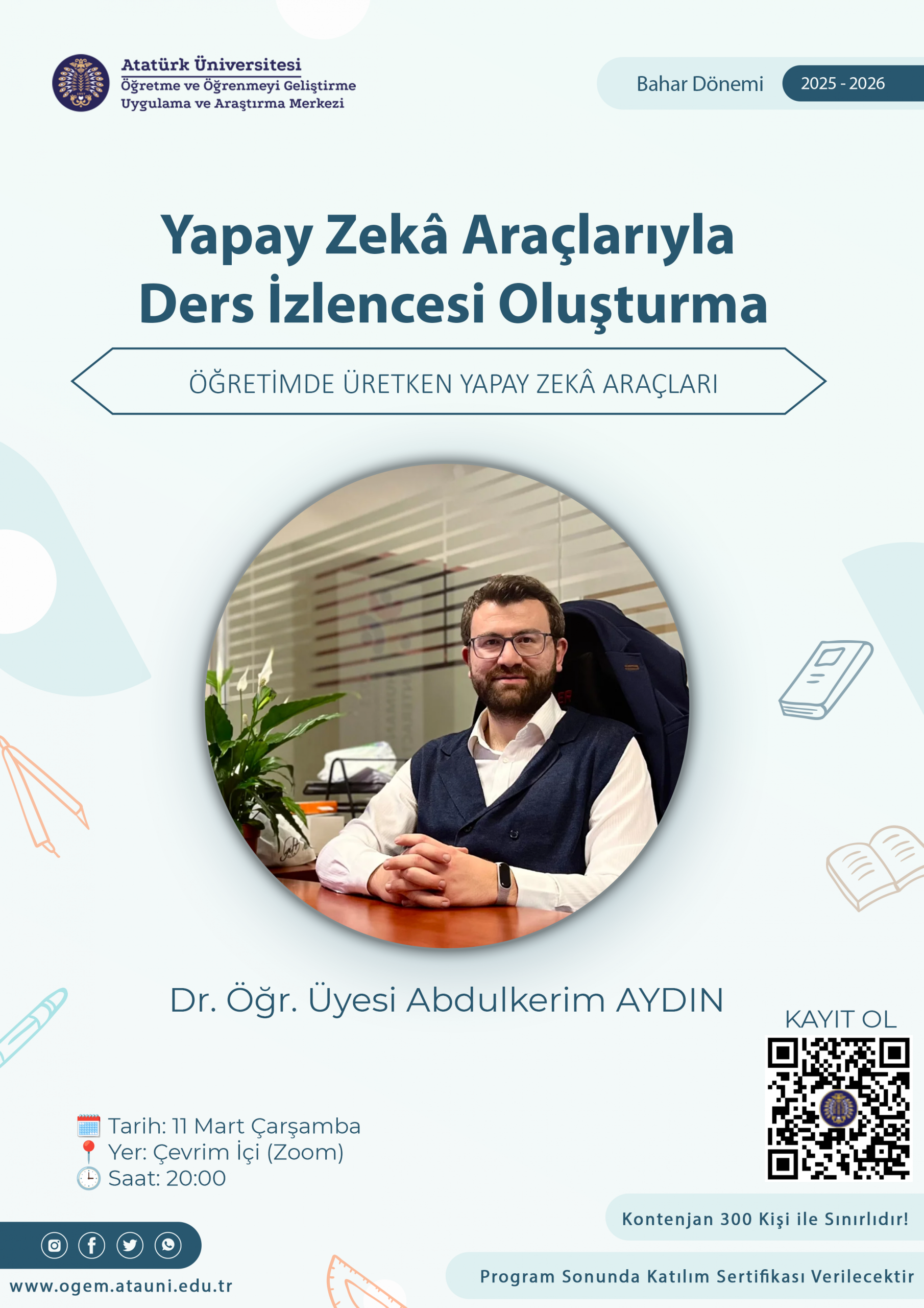 Atatürk Üniversitesi Öğretme ve Öğrenmeyi Geliştirme Uygulama ve Araştırma Merkezi (ÖGEM), “Eğitim ve Öğretimde Üretken Yapay Zekâ Araçları” serisine hız kesmeden devam ediyor.