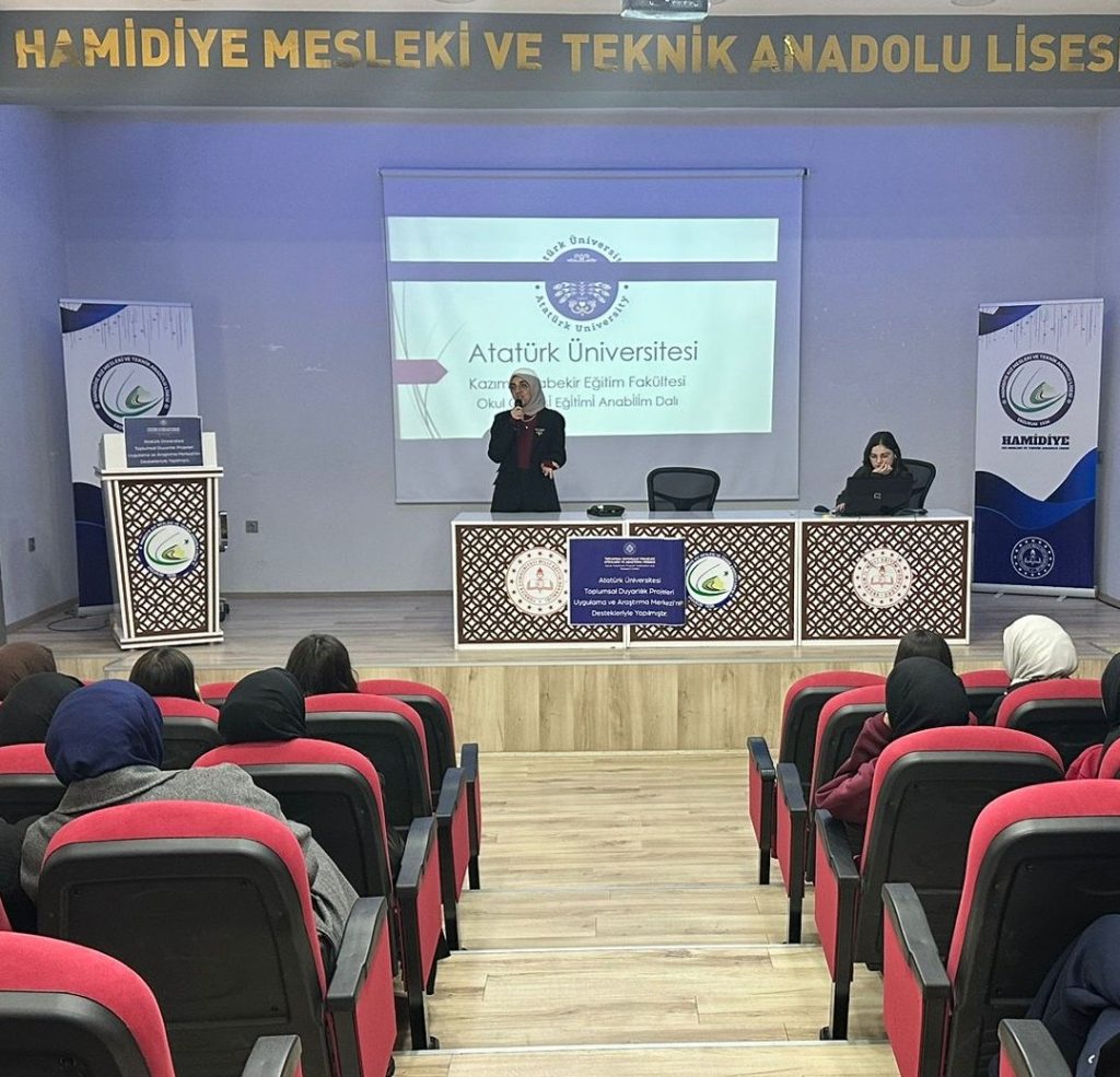 Geleceğe Yön Veren Adımlar: Kariyer ve Farkındalık Buluşması adlı Toplumsal Duyarlılık Projesi, Hamidiye Mesleki ve Teknik Anadolu Lisesi’nde gerçekleştirildi. Etkinlik kapsamında Okul Öncesi Öğretmenliği bölümü tanıtılarak üniversite yaşamı ve üniversitede düzenlenen etkinlikler hakkında öğrencilere bilgilendirme yapıldı. Program, öğrenciler tarafından ilgiyle takip edildi.